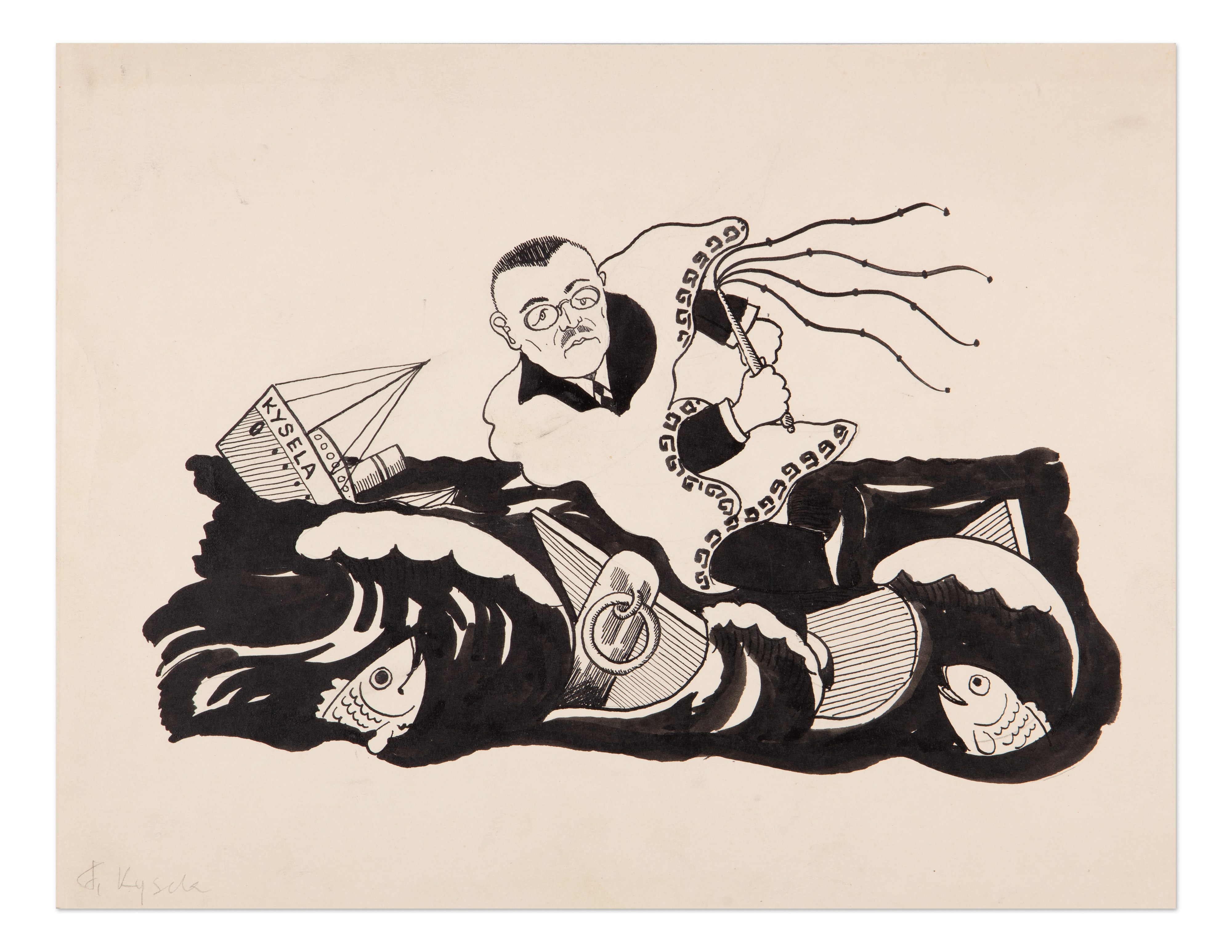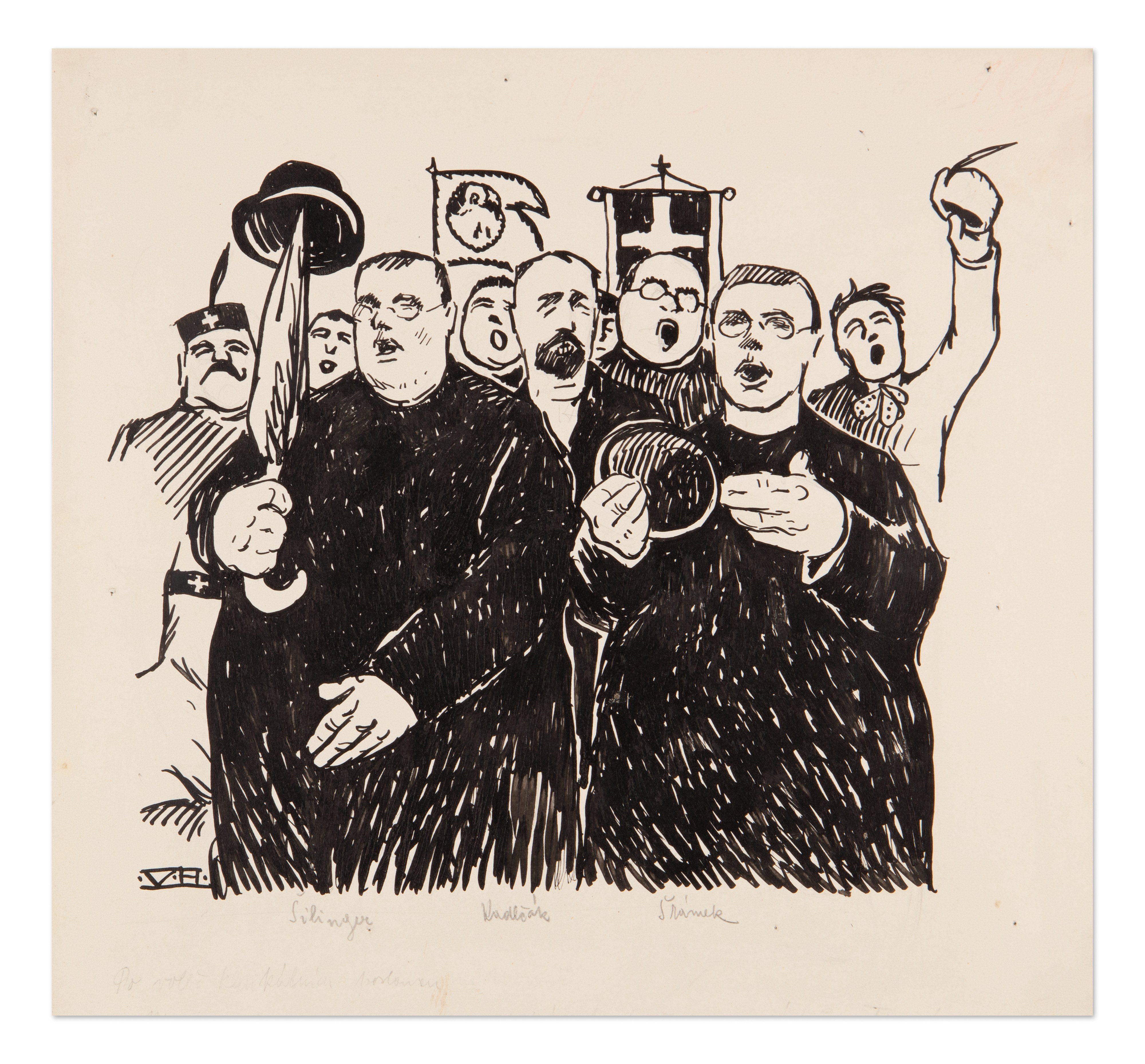 VÁCLAV HÜBSCHMANN, VÁCLAV KLIMÁNEK, JOSEF ROHAN, JOZEF ČEJKA AND OTHERS (CZECH / BOHEMIAN) - Collection of 17 illustrations and cartoons