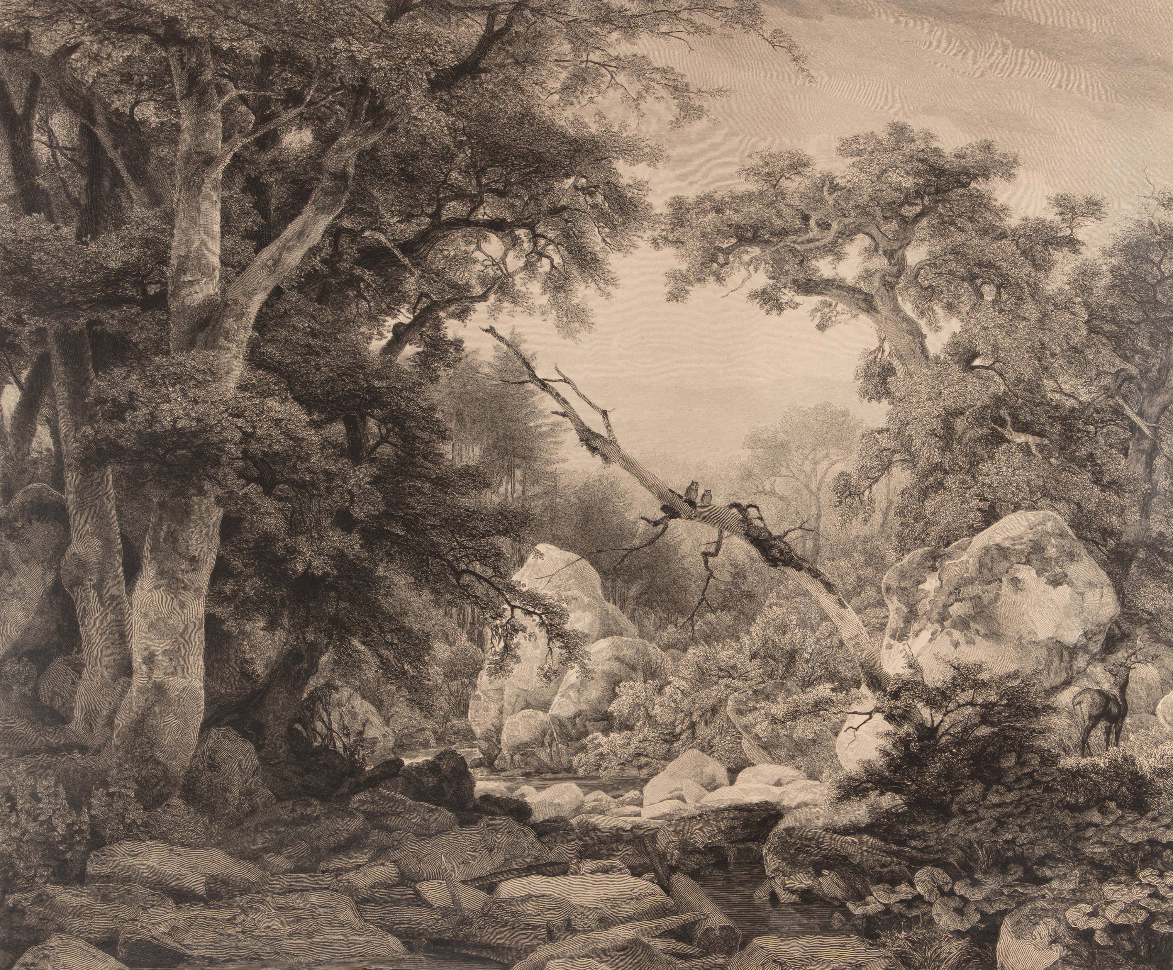 WILHELM VON ABBEMA (GERMANY / GERMAN 1812 - 1889) - A deer and two owls (after Lessing)
