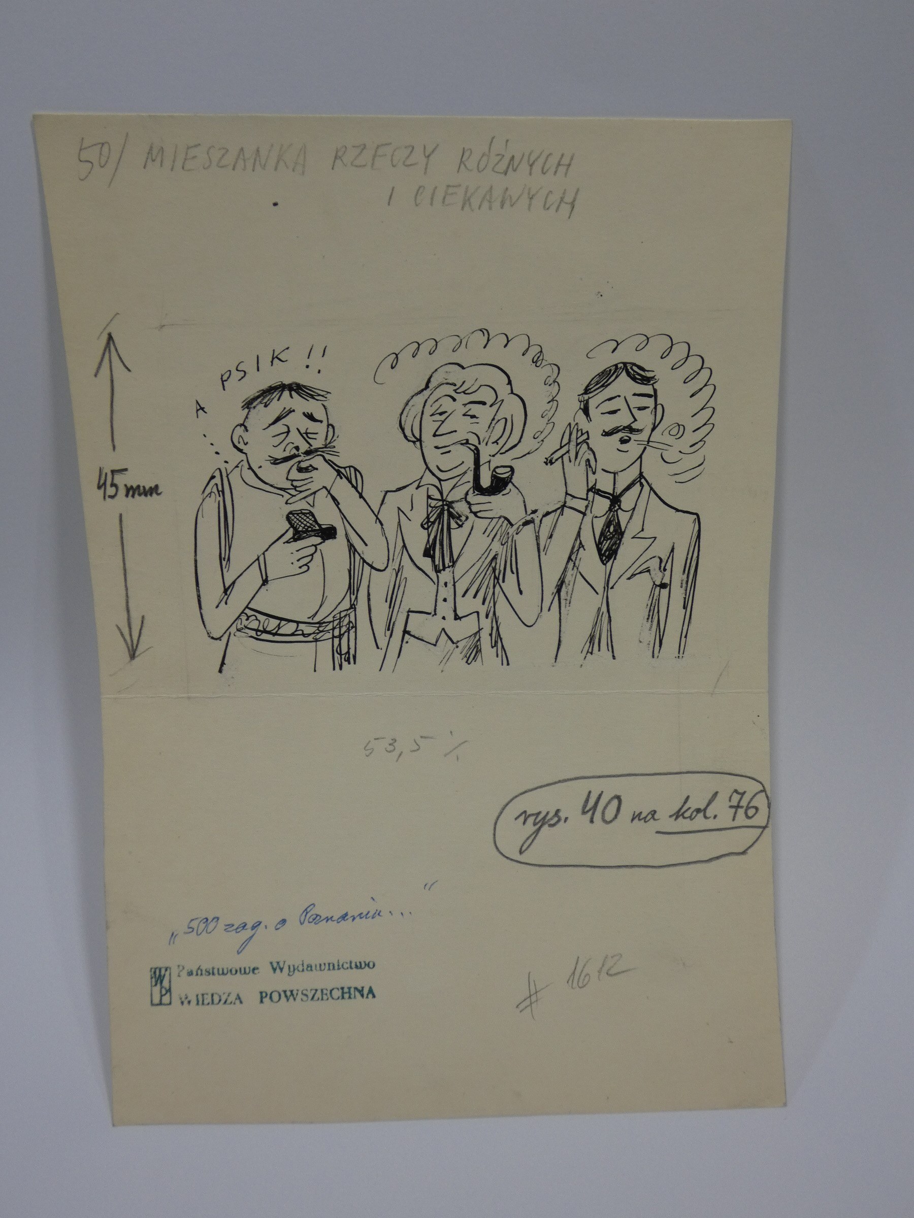 Tusz , papier - praca zawiera notatki wydawnicze oraz stempel wydawnictwa Wiedza Powszechna