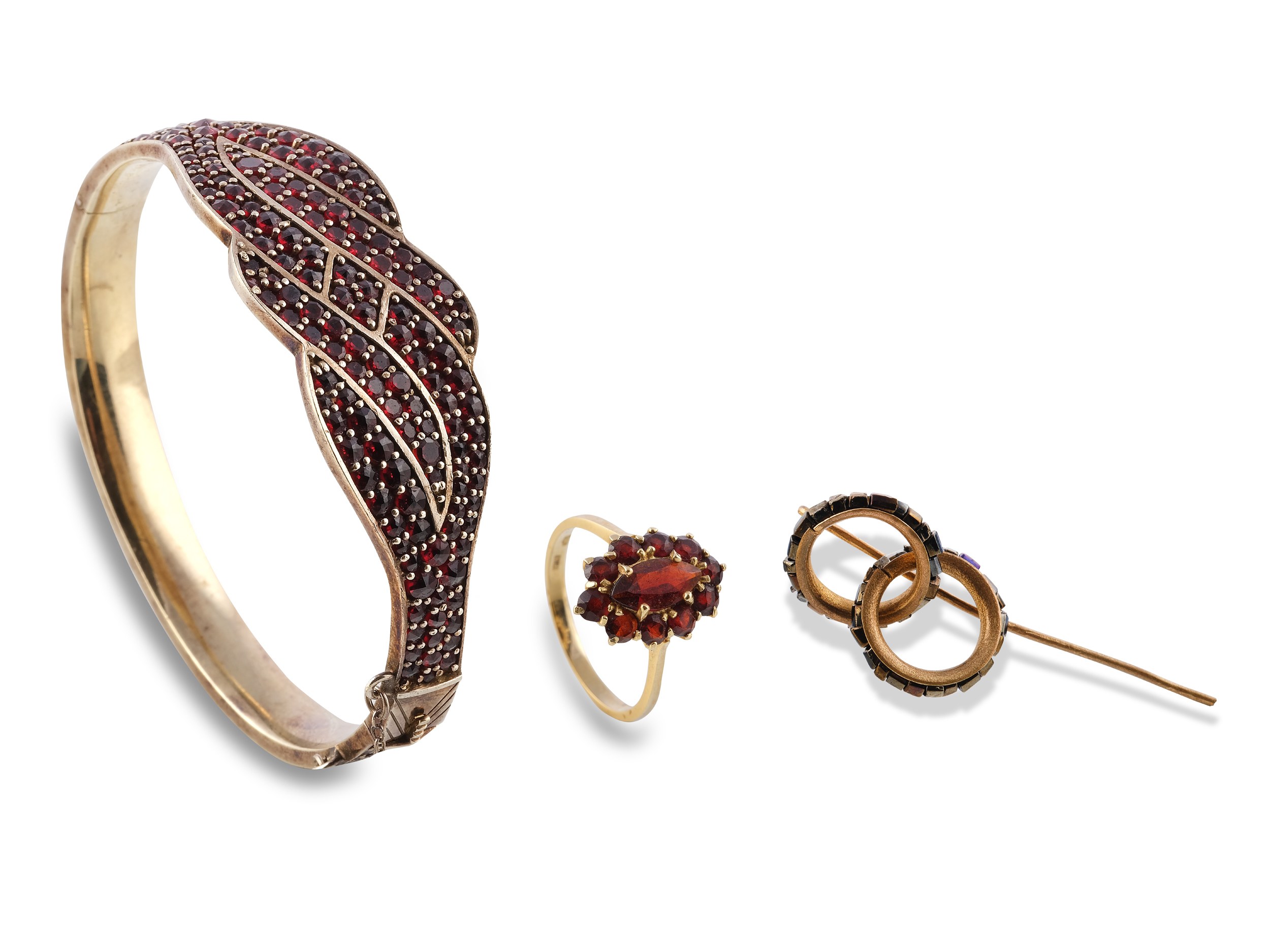 Garnet bangle silver gold plated, diameter 6.8 cm