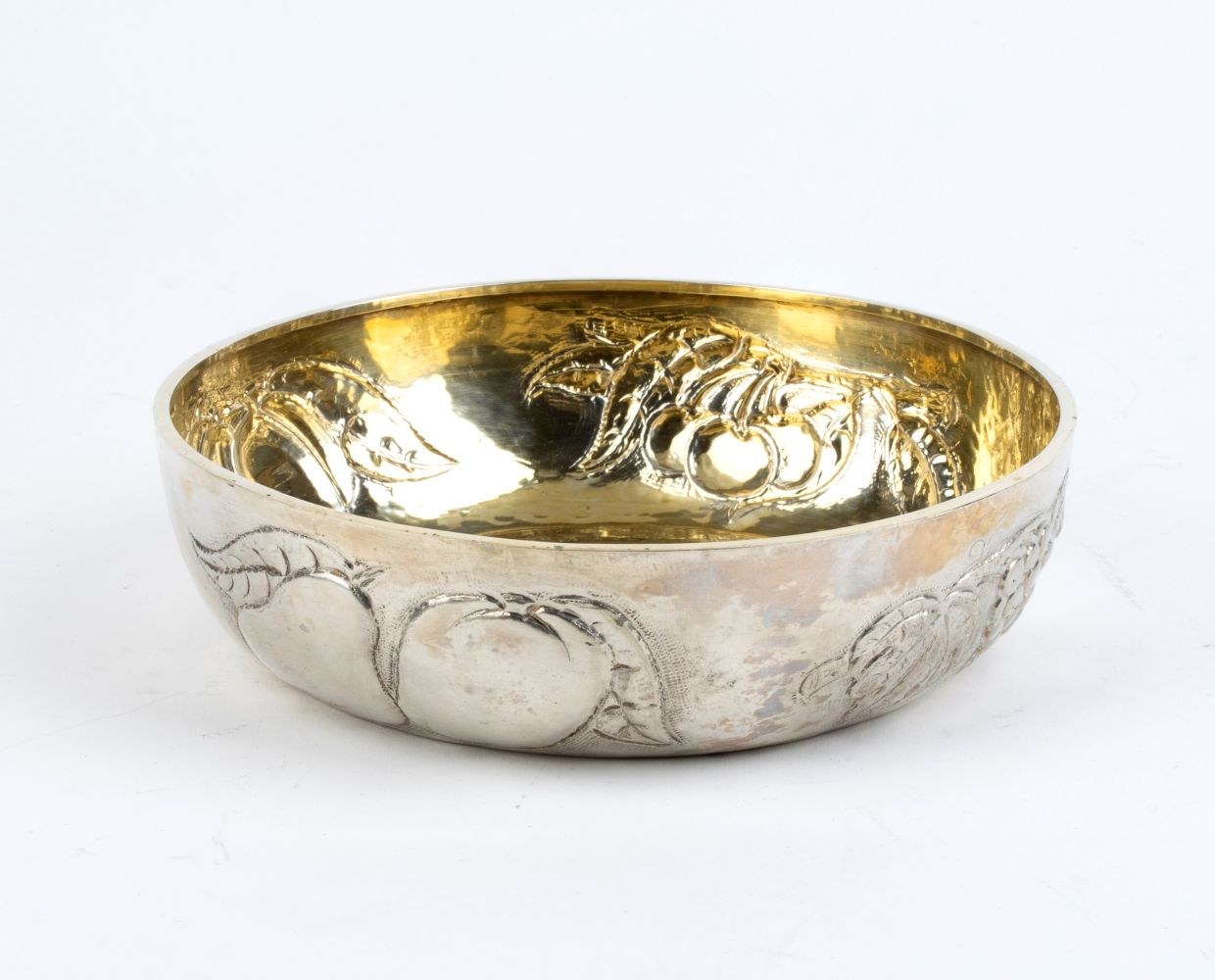 of round shape, goldplated inside, decorate with fruits and leaves motivs.