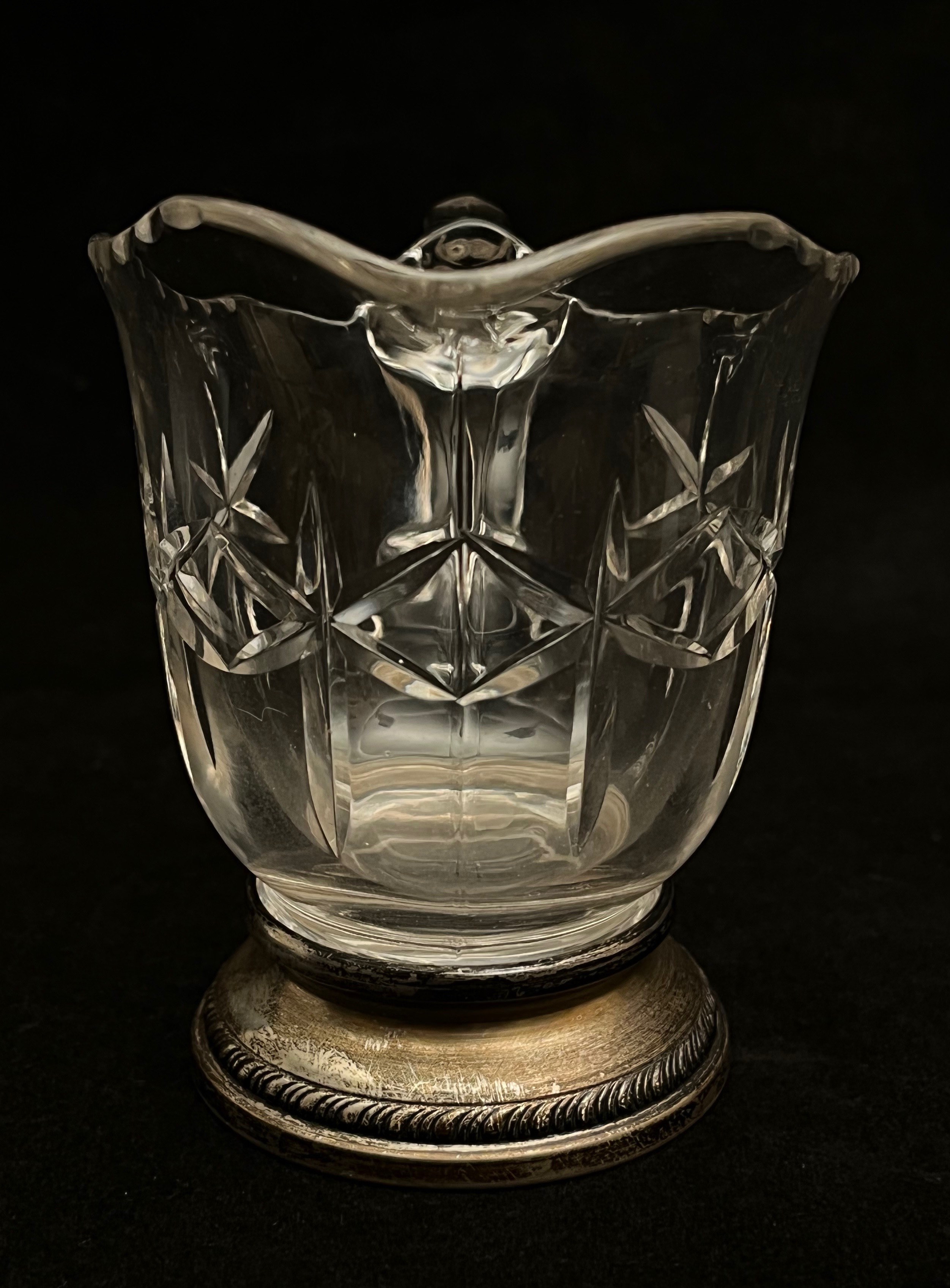 Cukiernica i mlecznik ze srebrnymi podstawami, szkło ręcznie odlewane i szlifowane