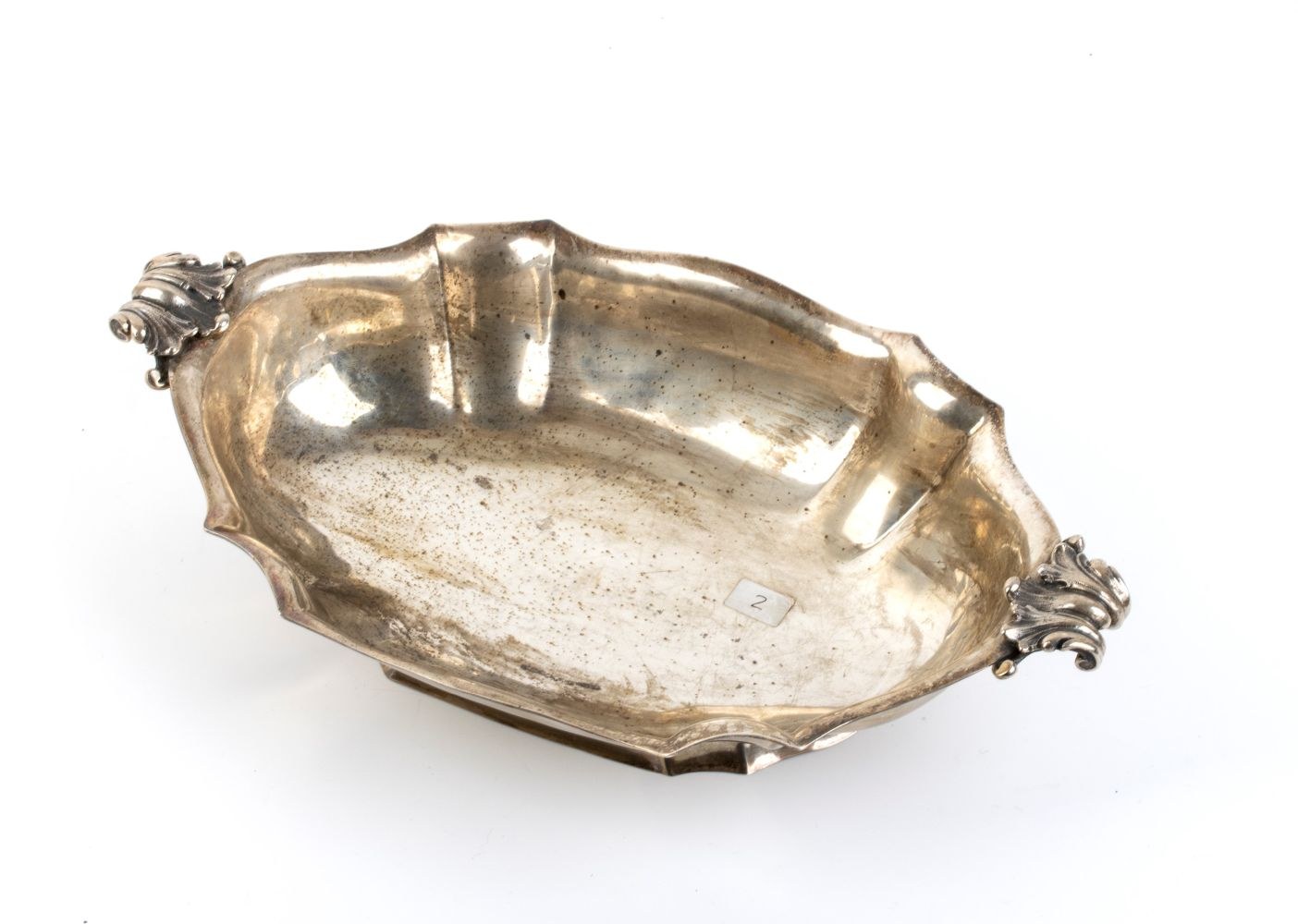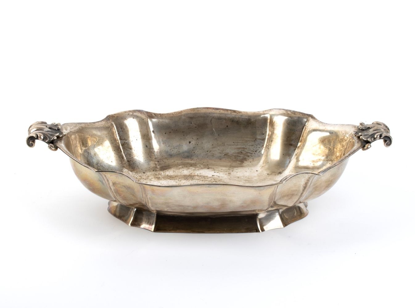 of oval shaped with side handles. 800/1000 silver, hallmarked "800 - 32 fascist party symbol MI", silversmith DITTA MESSULAM ENRICO di Alberto.
