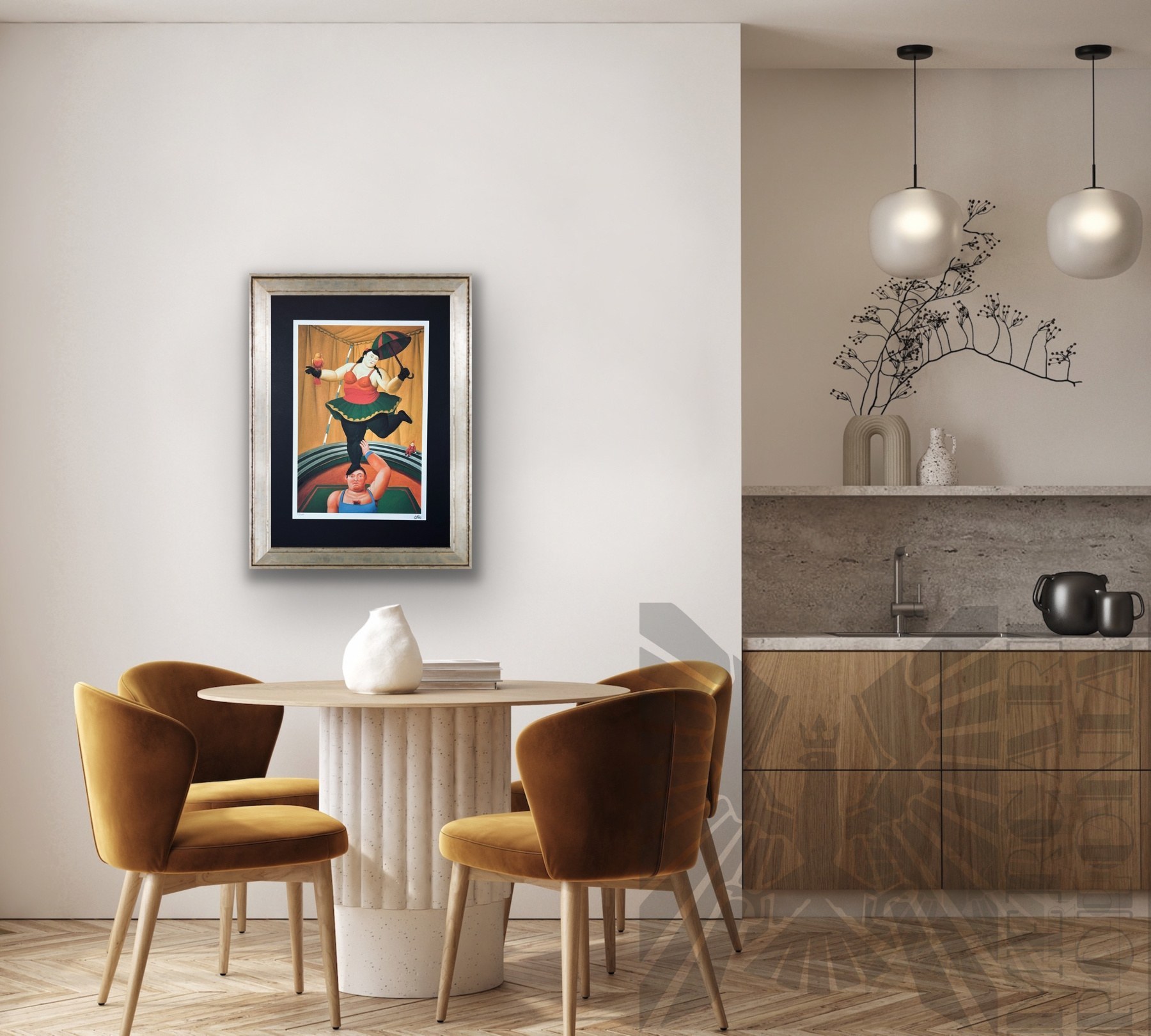 Litografia, papier welinowy o wysokiej gramaturze, wymiary: 55.5 x 37,5 cm w świetle passe-partout, 71 x 51 cm w oprawie passe-partout, edycja limitowana , ręcznie numerowana ołówkiem 24/300,Sygn. z płyty pod kompozycją „Botero” l.d, sucha pieczęć wydawcy p.d. : "ARTIS"; na odwrocie hologram „verification of authenticity”. Oryginalny certyfikat.