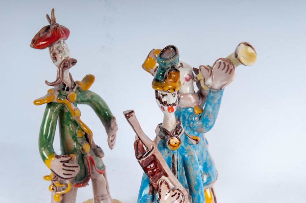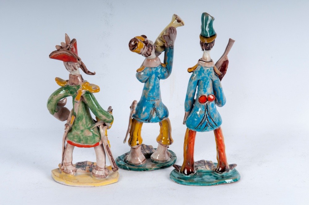 a rifleman 19.5 x 8 x 5.5 cm; a soldier with a pistol 17.5 x 5.5 x 7.5 cm, a trumpeter 17.5 x 7.5 x 5.5 cm. De Simone manufacture.