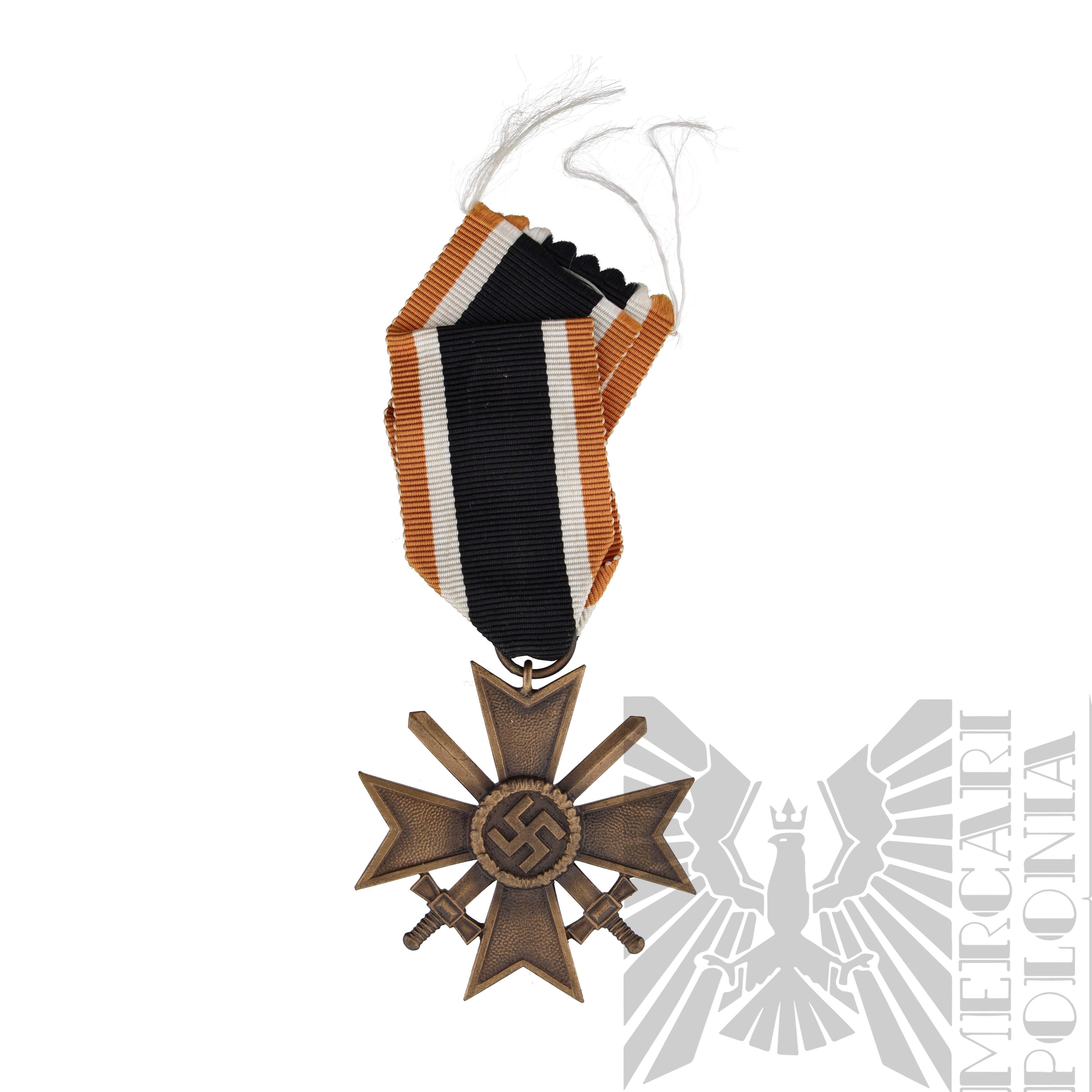 Odznaka ma formę krzyża maltańskiego o lekko rozszerzających się ramionach, o chropowatej fakturze powierzchni. W centralnej części znajduje się wieniec laurowy z wpisaną swastyką – symbolem nazistowskim i skrzyżowanymi mieczami. Krzyż zawieszony jest na wstążce w barwach czarno-biało-czerwonych, czyli narodowych barwach niemieckich tamtego okresu.