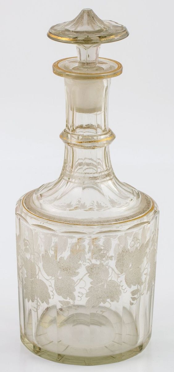 Szkło bezbarwne, szlifowane, powlekane, złocenia, wys. z korkiem 31 cm