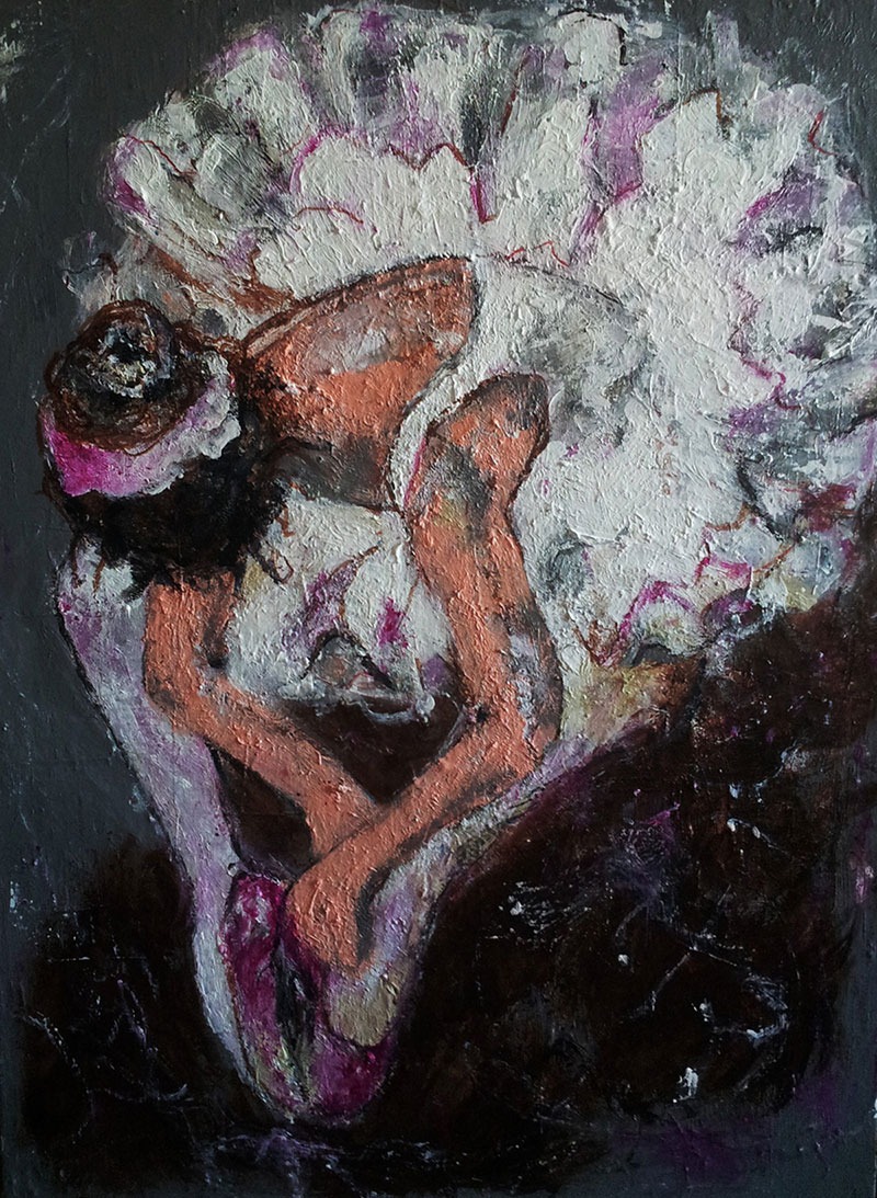 akryl, tusz, werniks, płótno, 80 x 60 cm