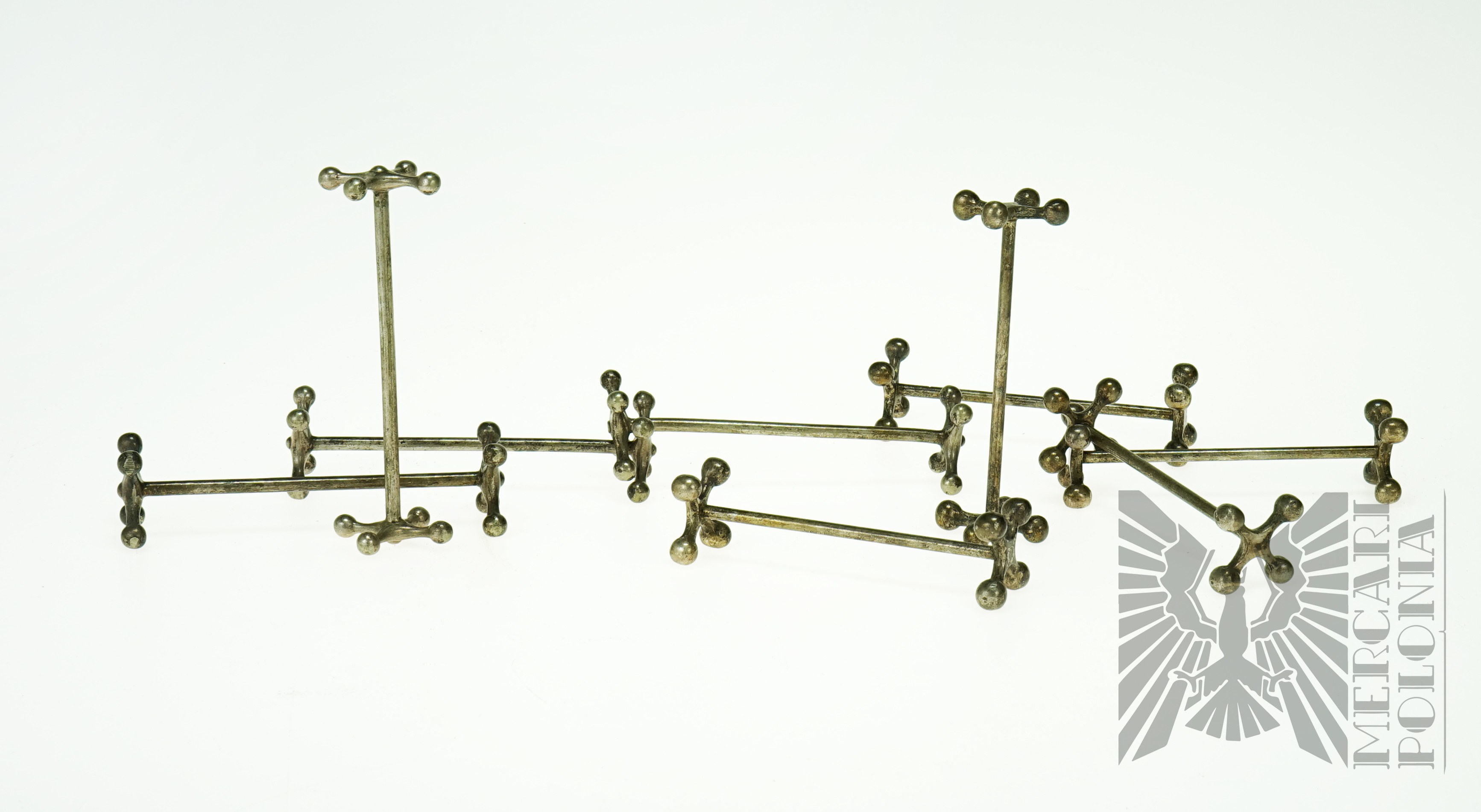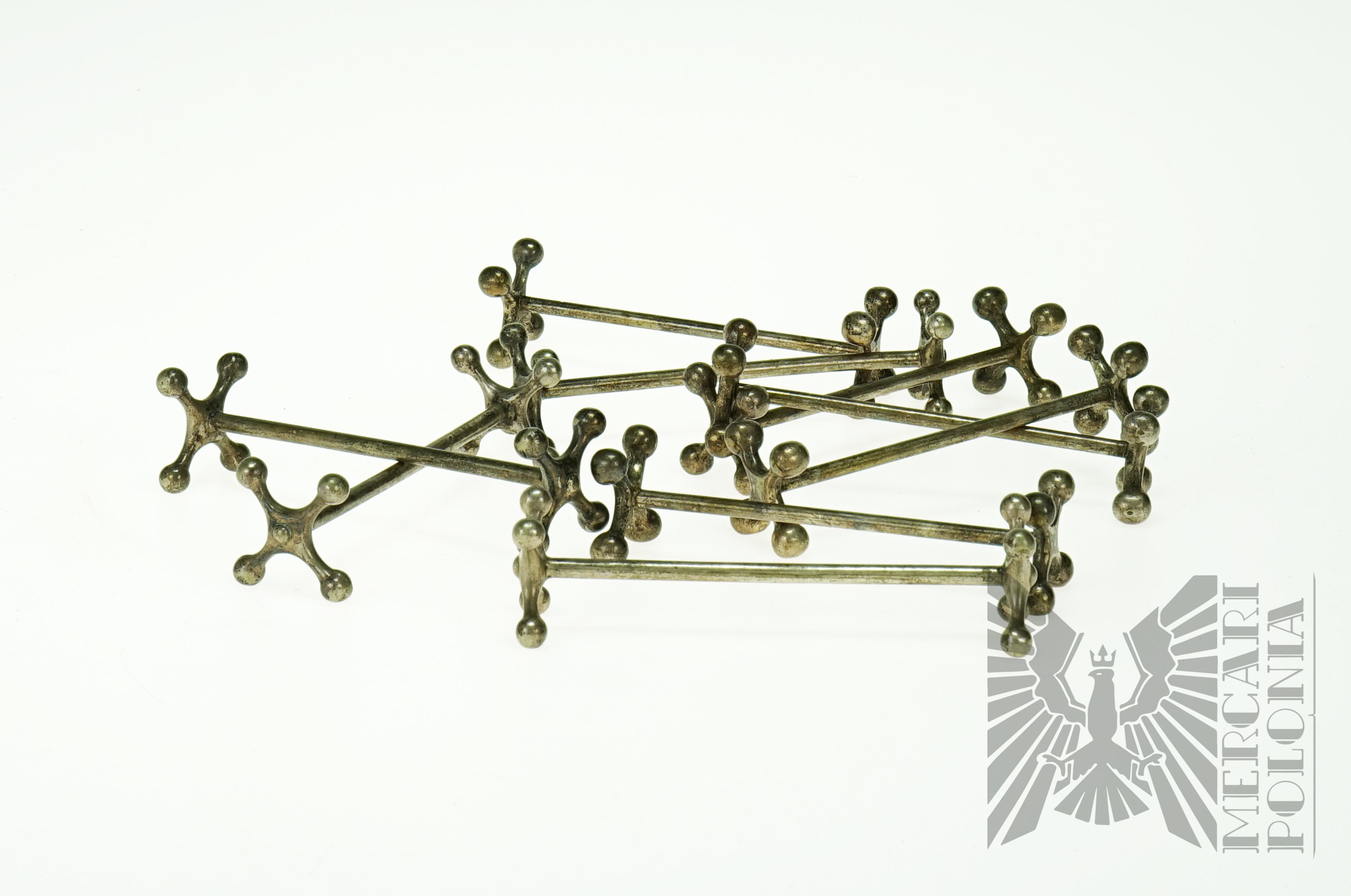 Zestaw dziewięciu platerowanych koziołków to sztućców.