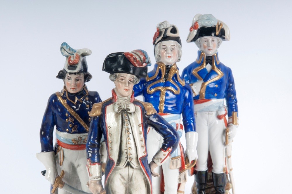 military figures, casting molding. Manufacture "N" crowned in blue under glaze.