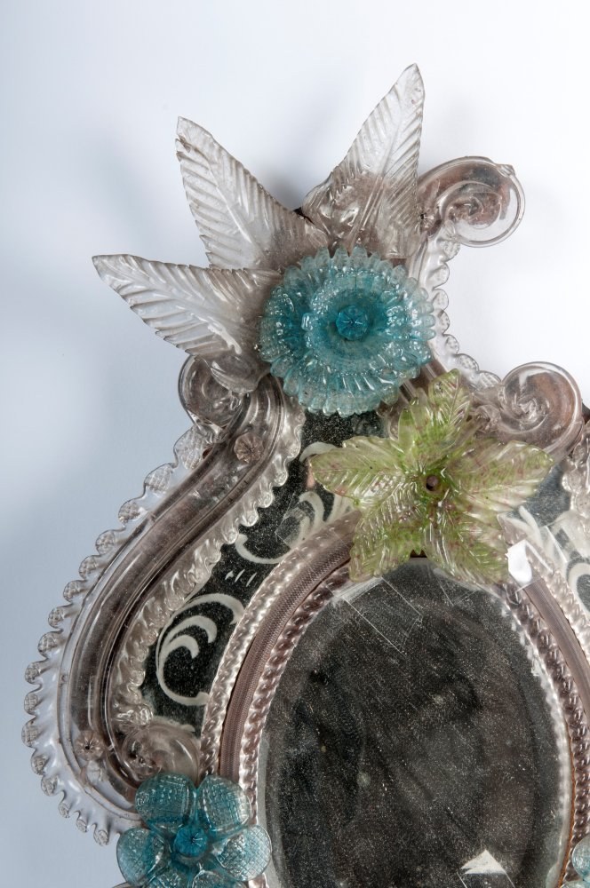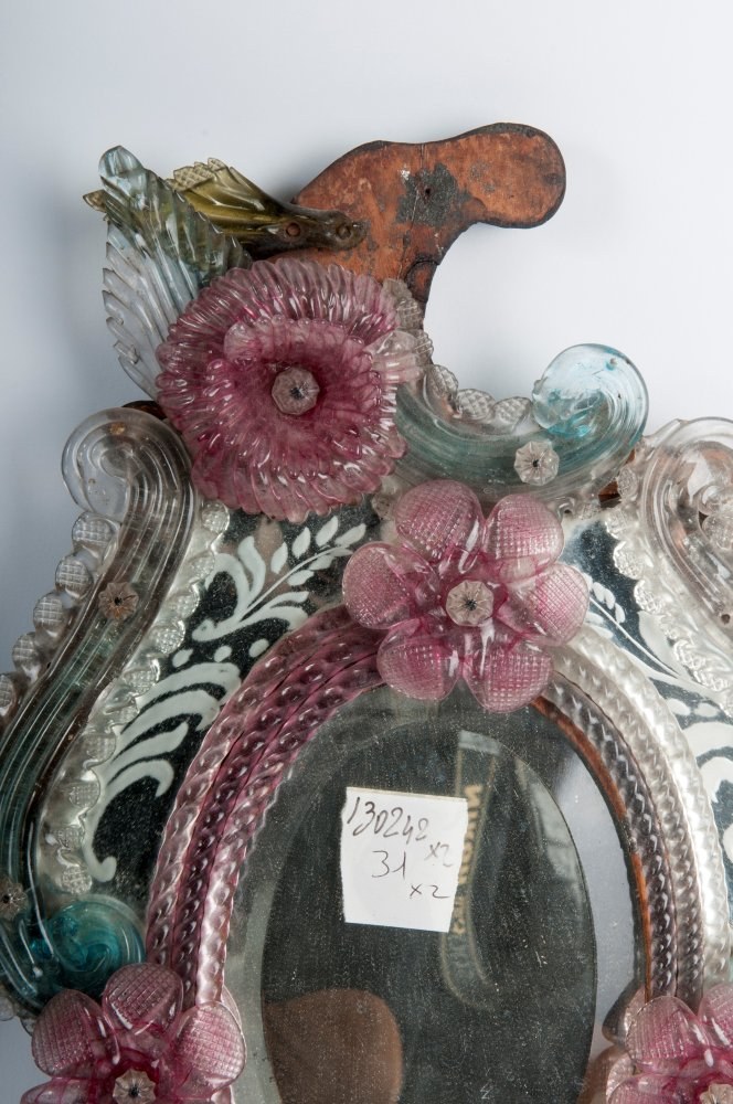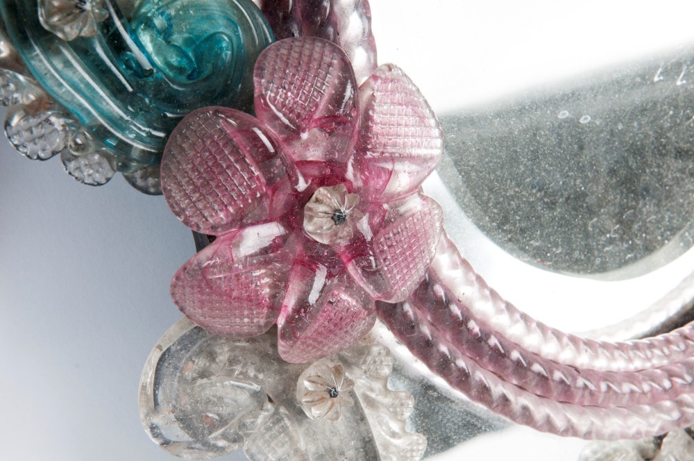 Baroque style with floral and rocaille decoration, white, blue, green and pink.