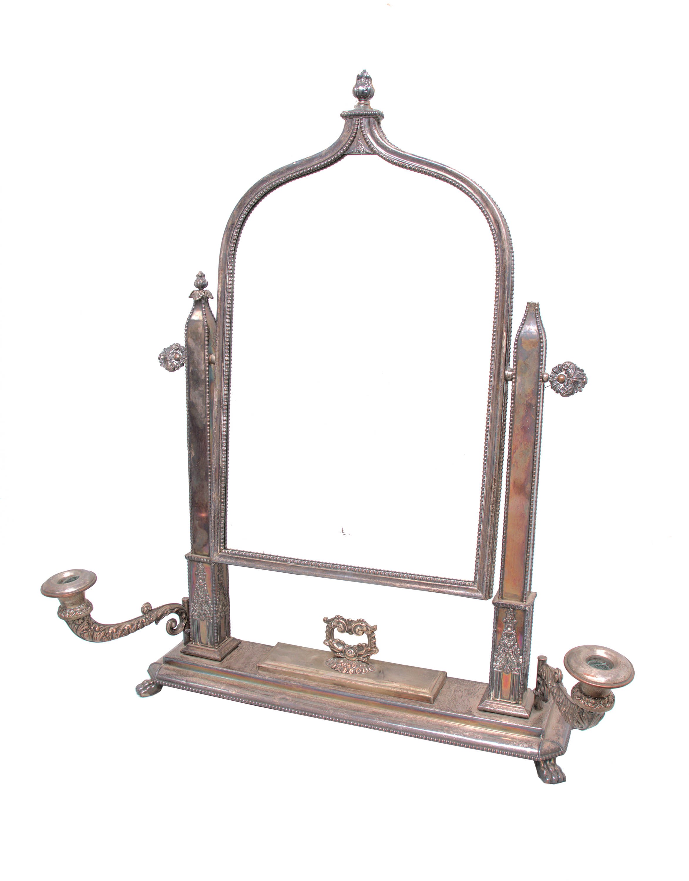 mosiądz srebrzony; wys. 72 cm, dł. podst. 52 cm; brak zwieńczenia jednej z kolumn