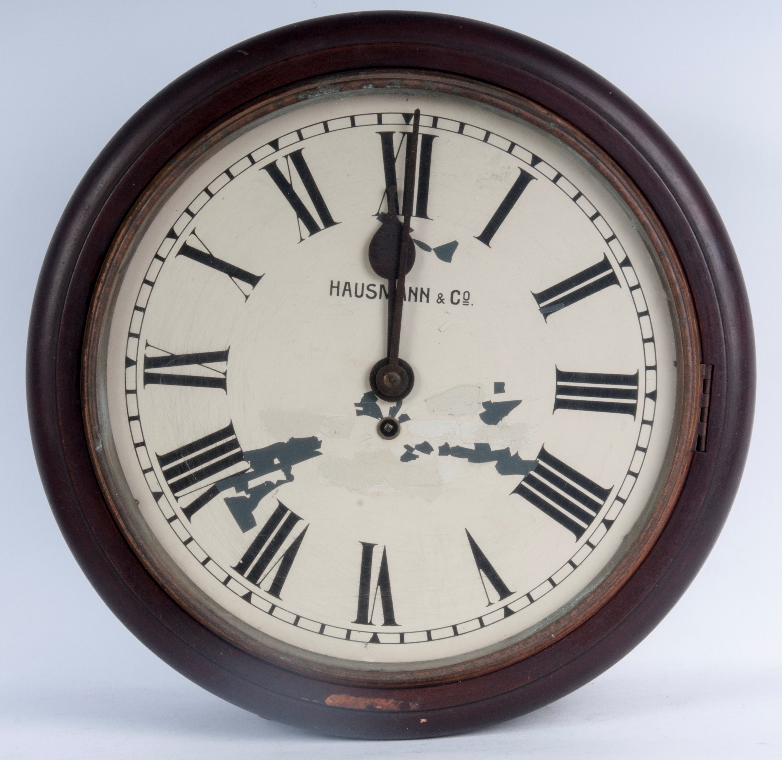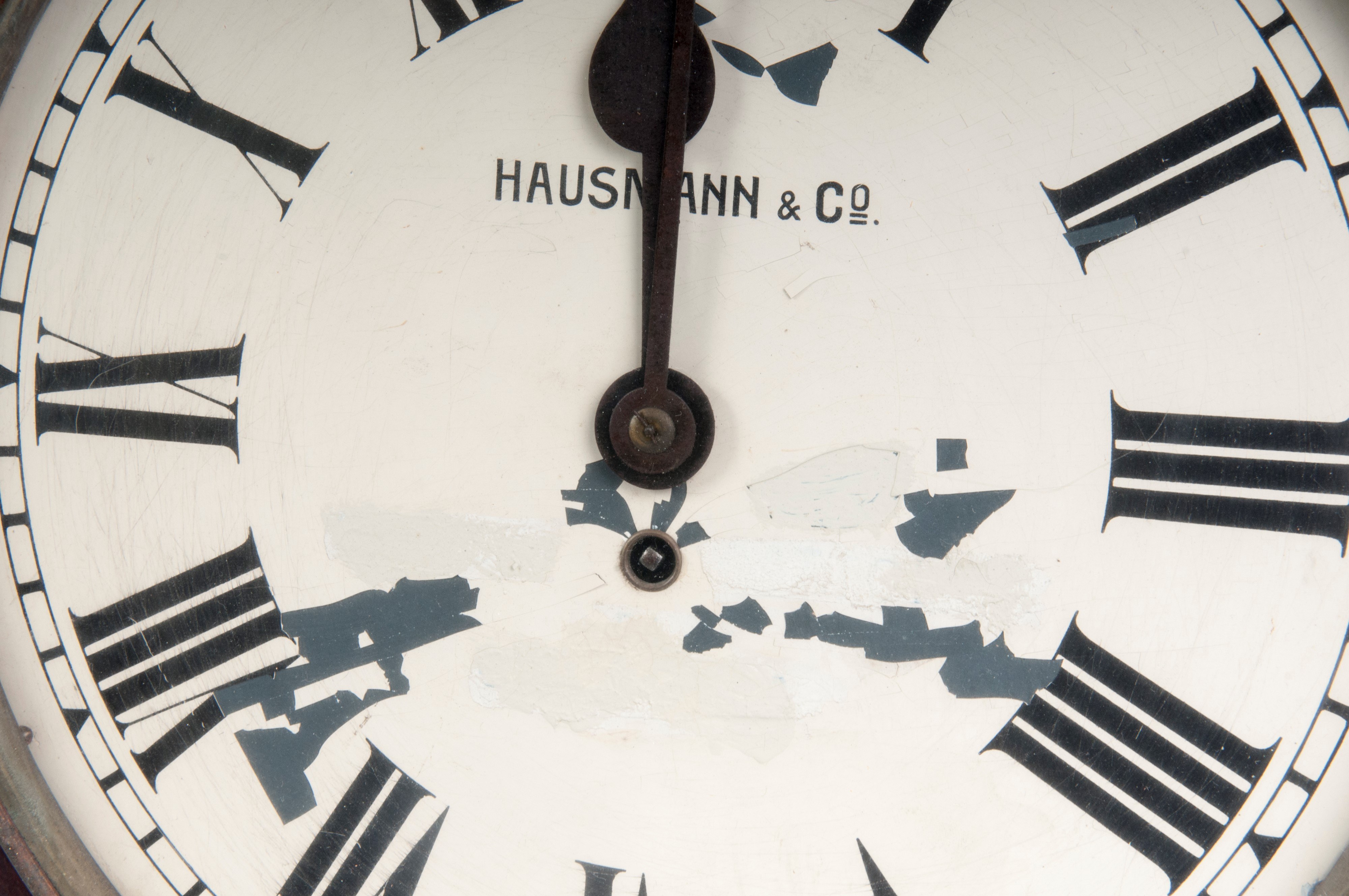 circular metal dial with Roman numerals and Hausman & co. inscription