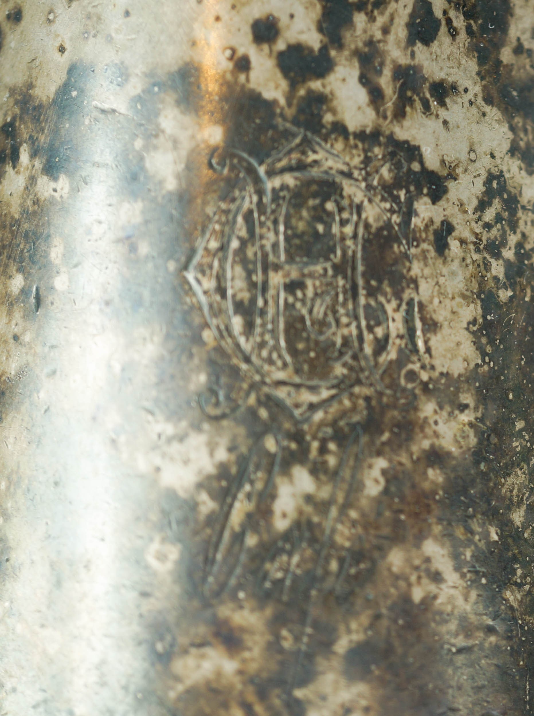 naturalna, gruba warstwa patyny, miejscowe przebarwienia srebrzenia, poza tym stan bardzo dobry
