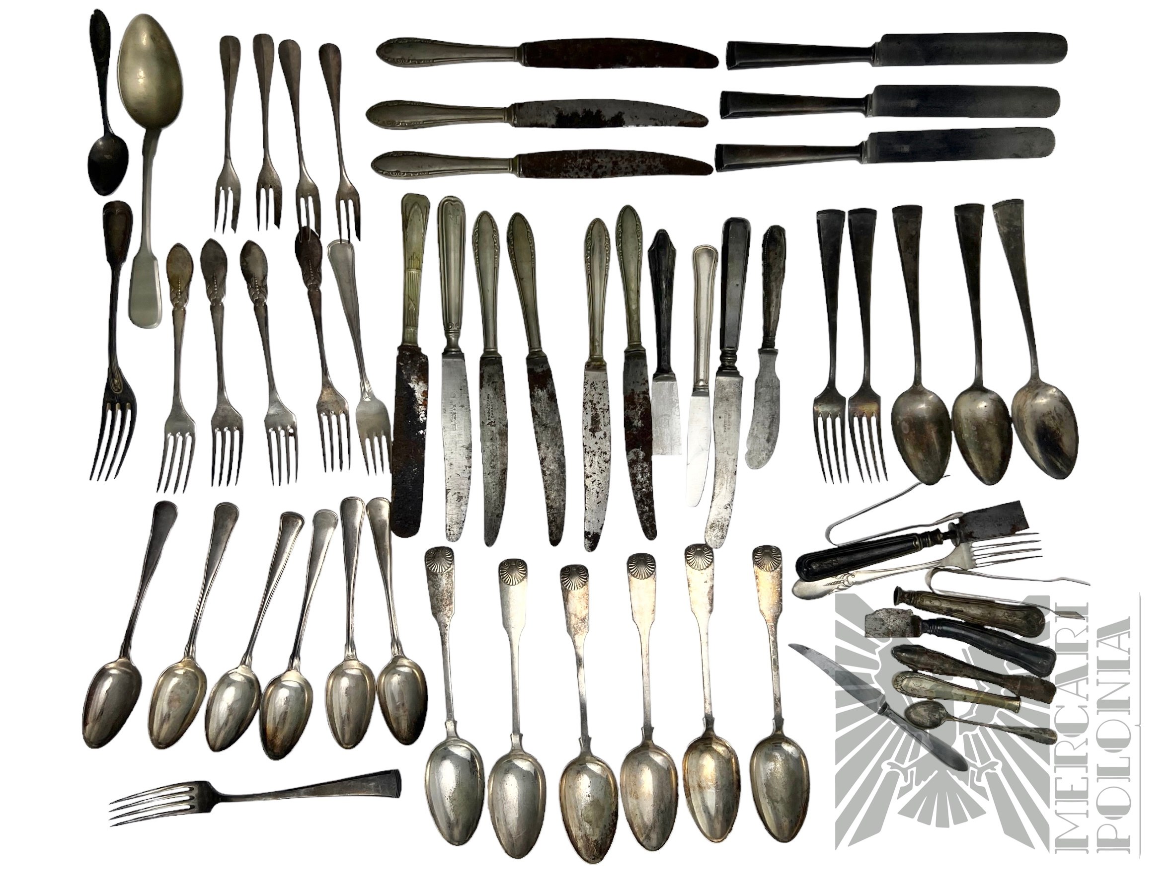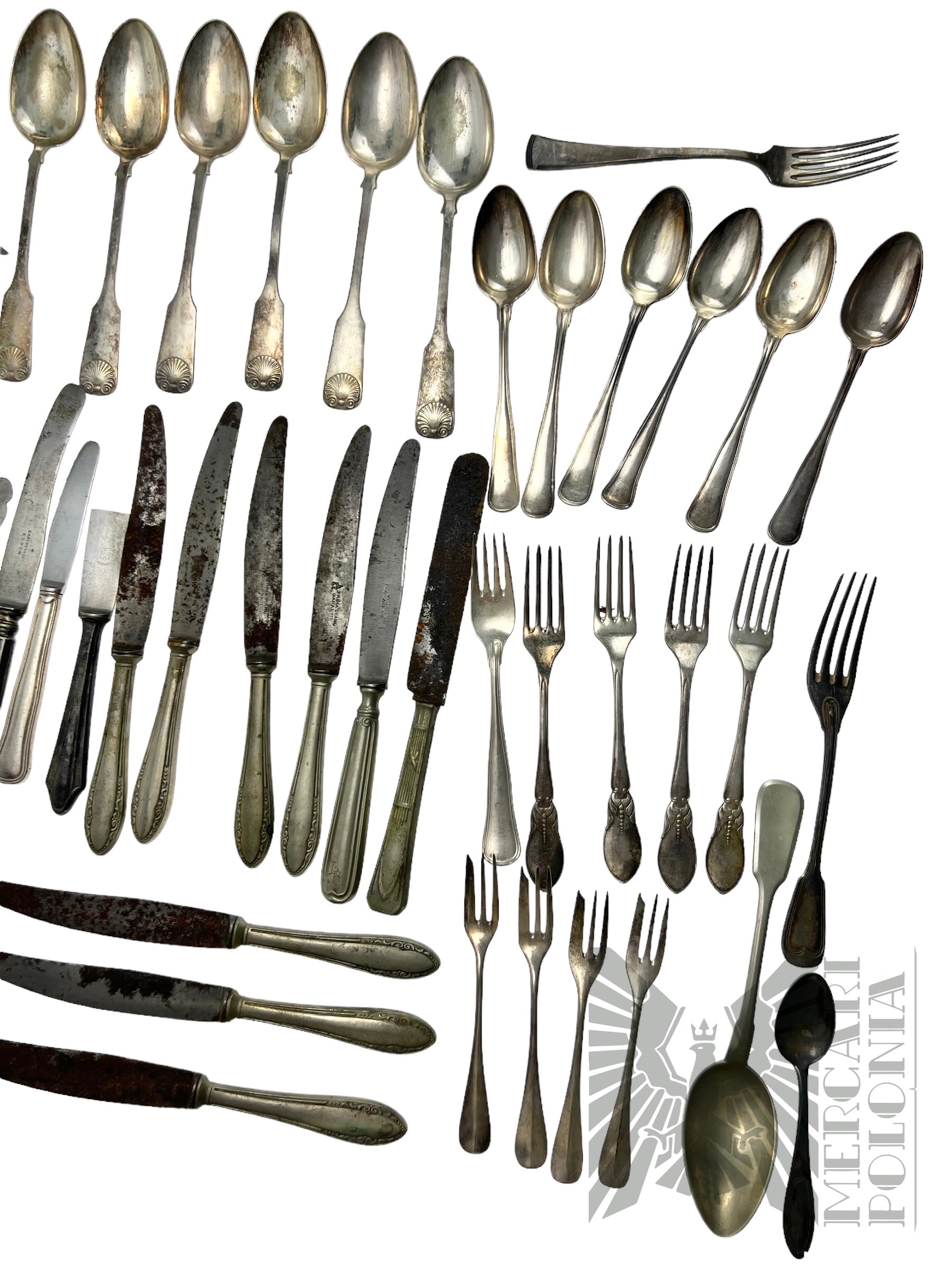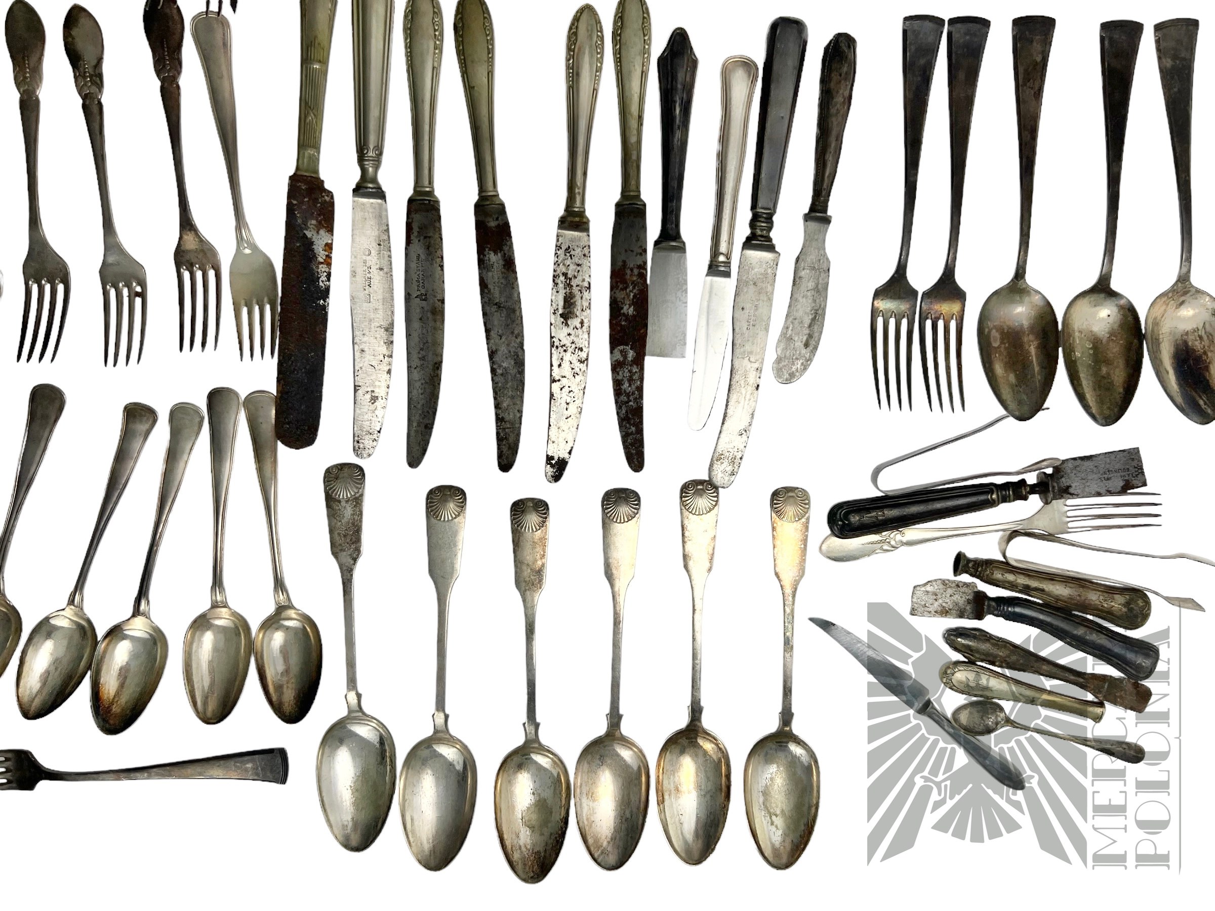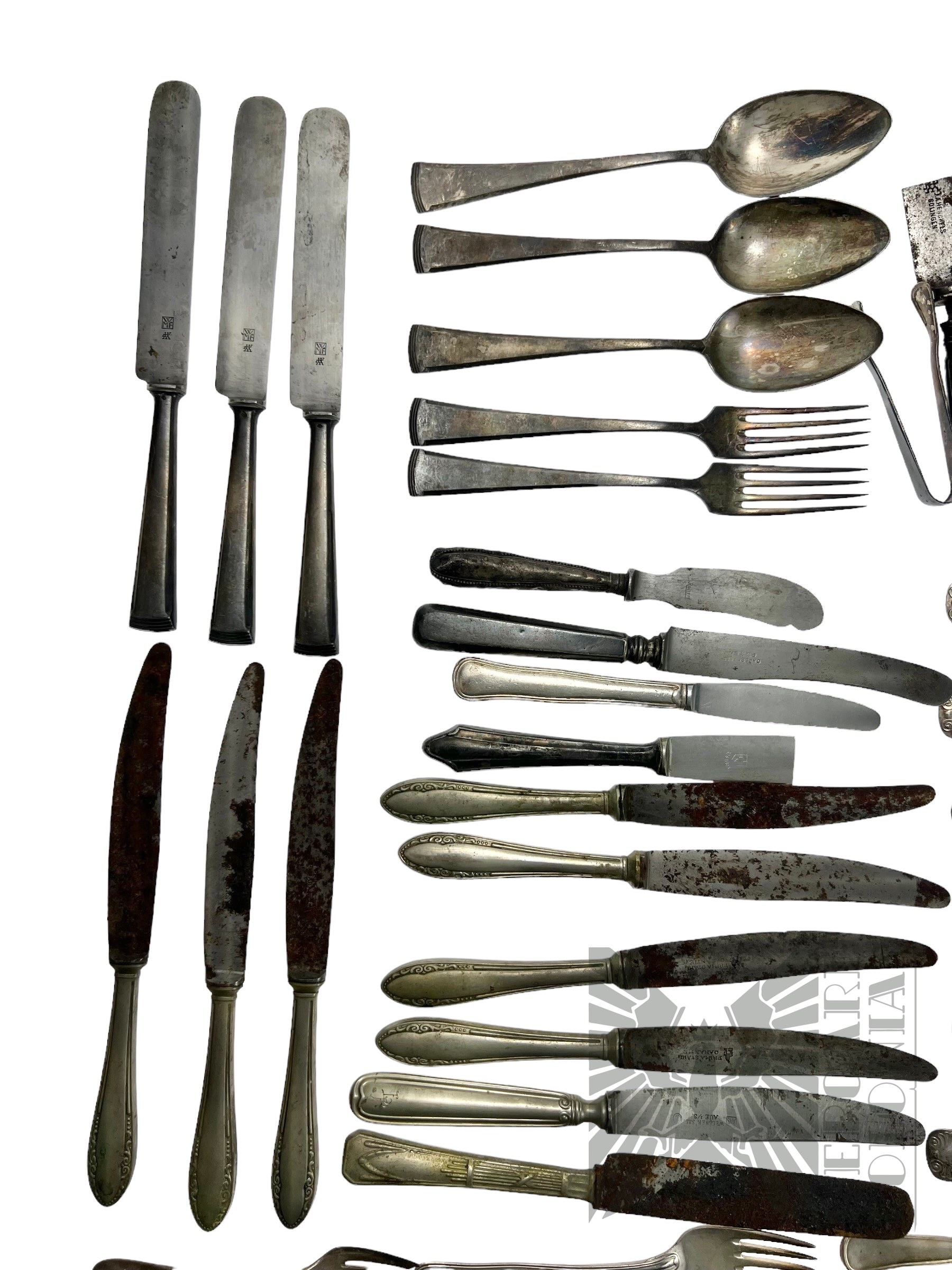 Ogromny zestaw sztućców platerowanych, noże, łyżki, widelce etc, stan ogólny widoczny na zdjęciach.