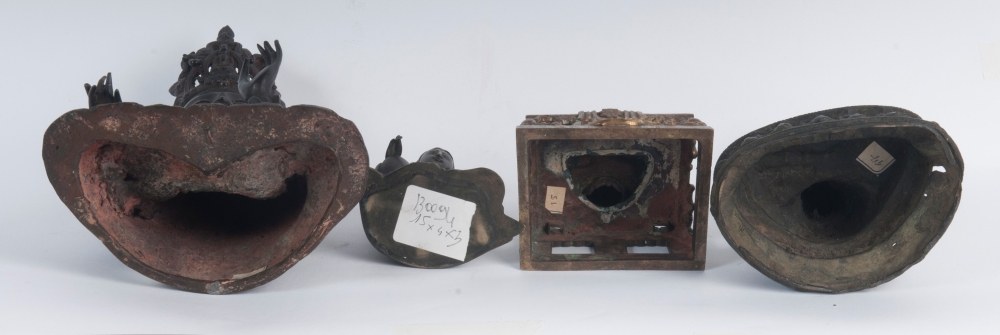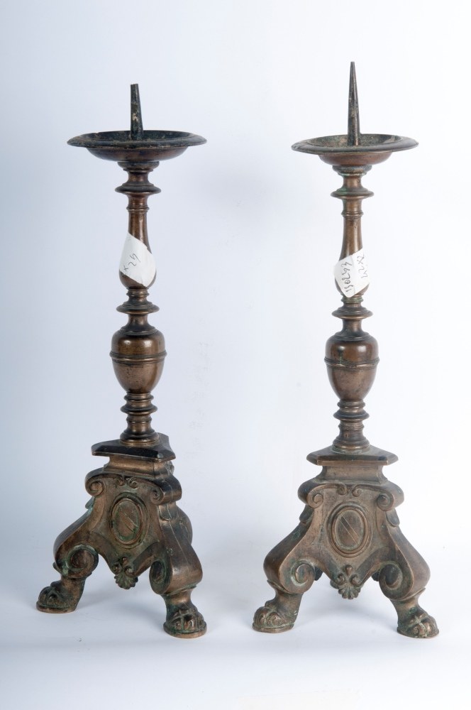 of seventeenth-century taste, triangular base with animal feet, baluster shaft with central ring.