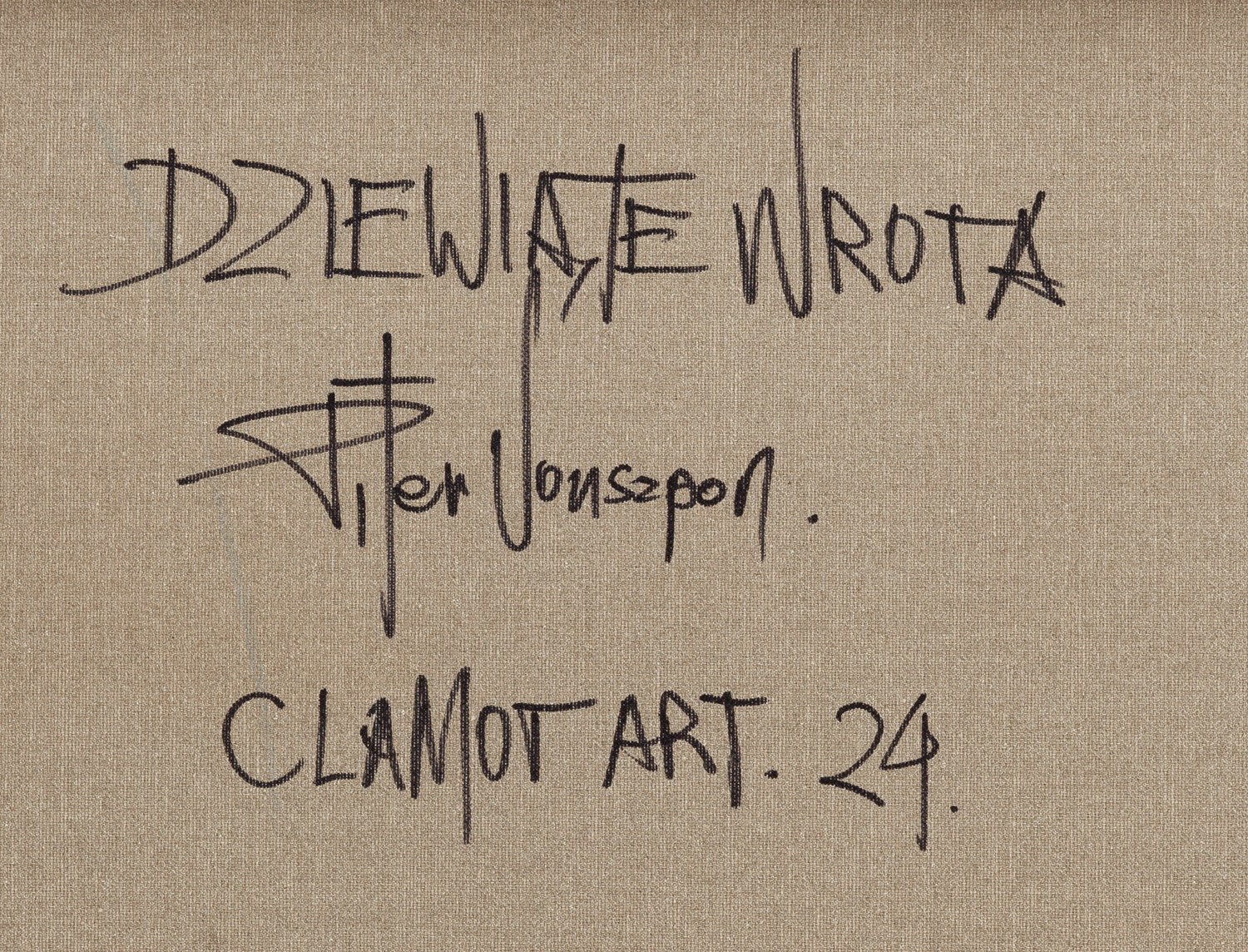 sygnowany, datowany i opisany na odwrociu: 'DZIEWIĄTE WROTA | Piter Vonszpon. | CLAMOT ART. 24.'