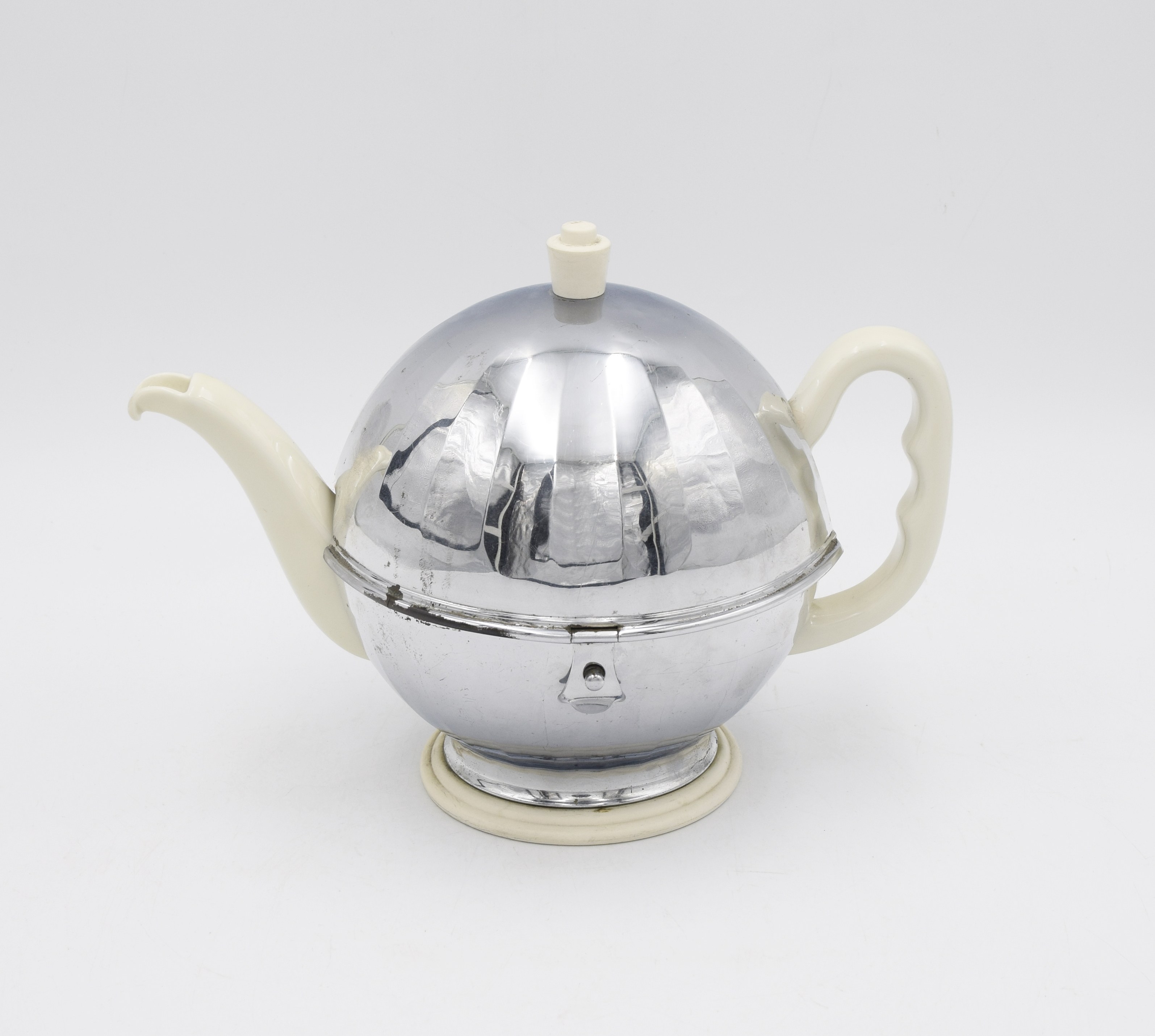 Imbryk cebulasty z nakrywką, wylewem w formie dzióbka i c-kształtnym uchem. W termosie kulistym, otwieranym, z wkładką z filcu, wspartym na kolistej stopce, zwieńczony stożkowatym uchwytem.