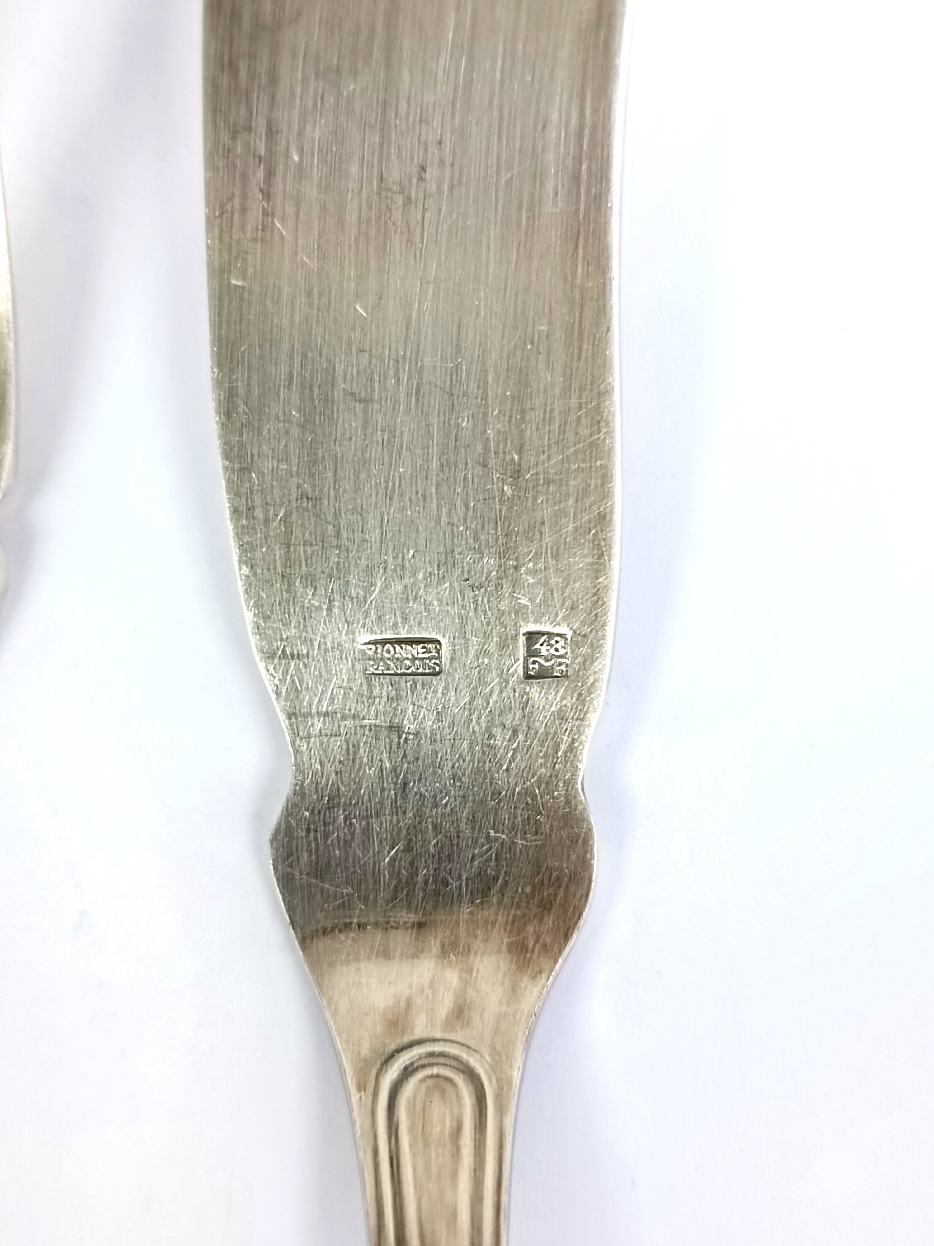 Posrebrzany zestaw sztućców do ryb, François Frionnet, Francja