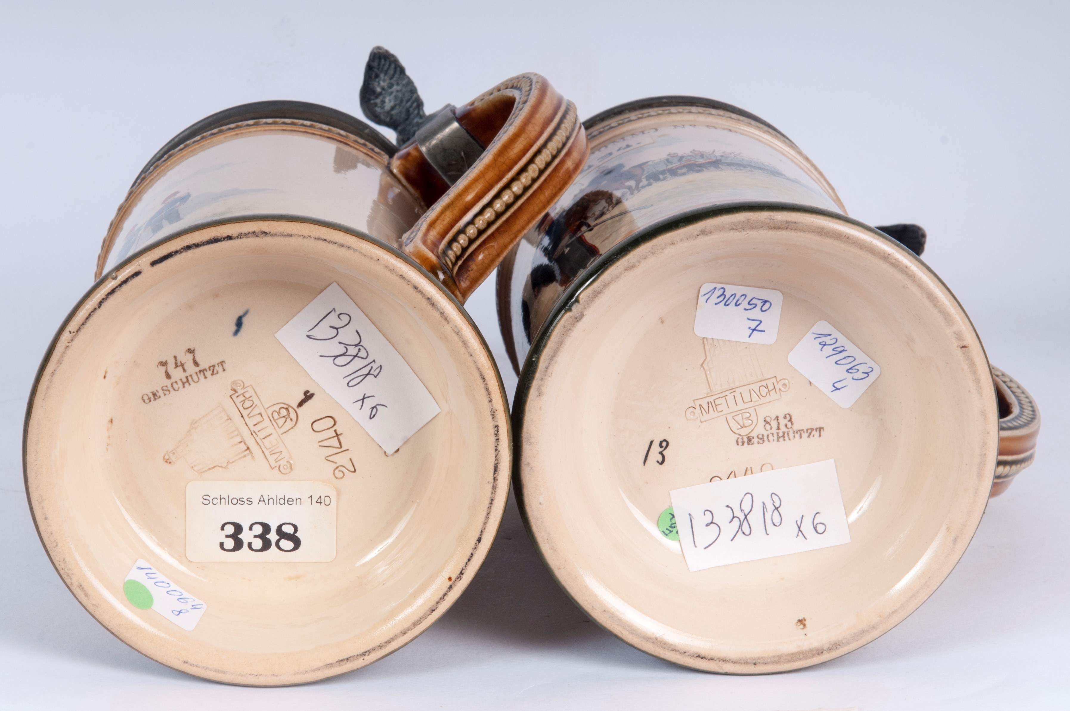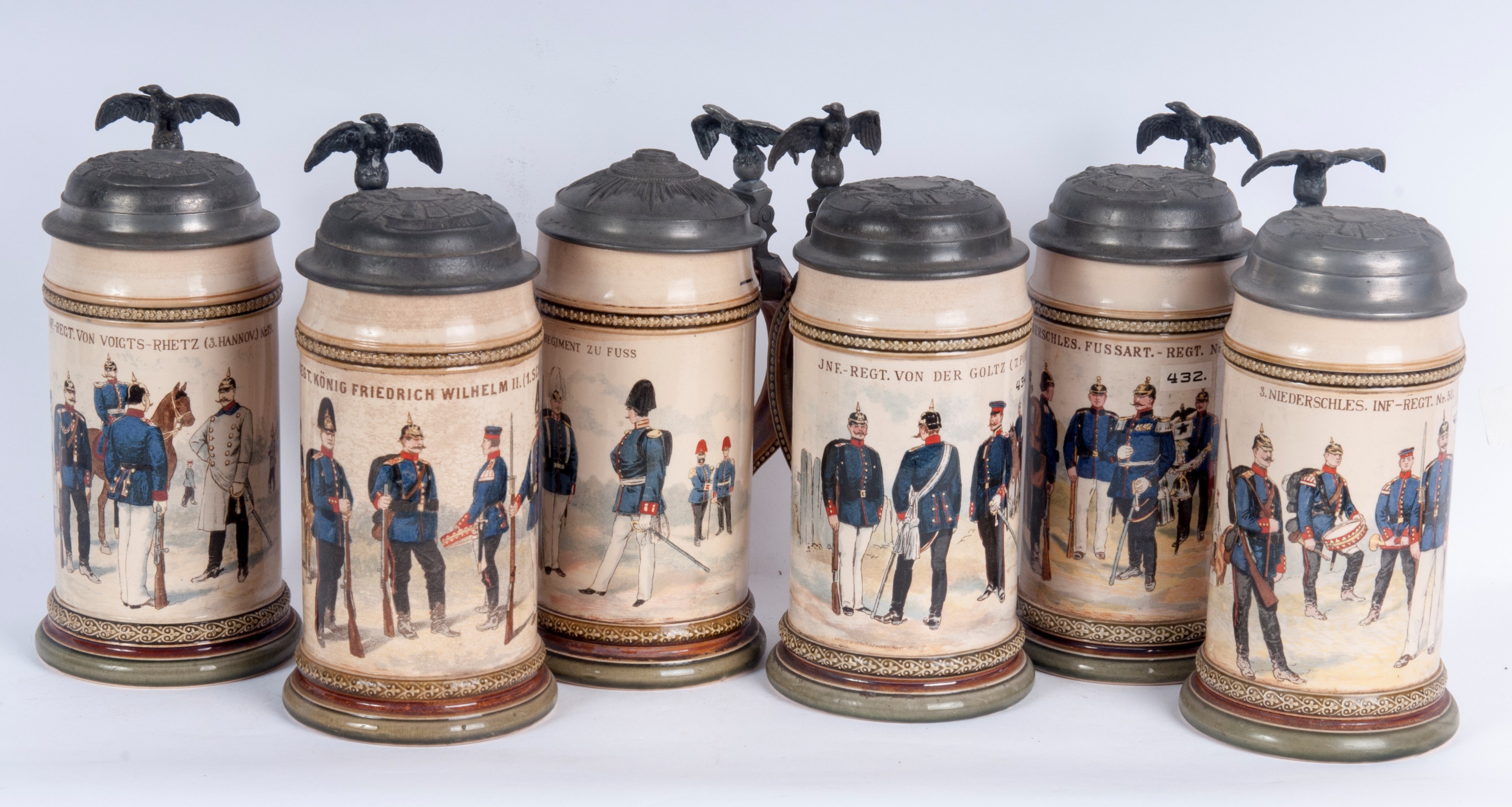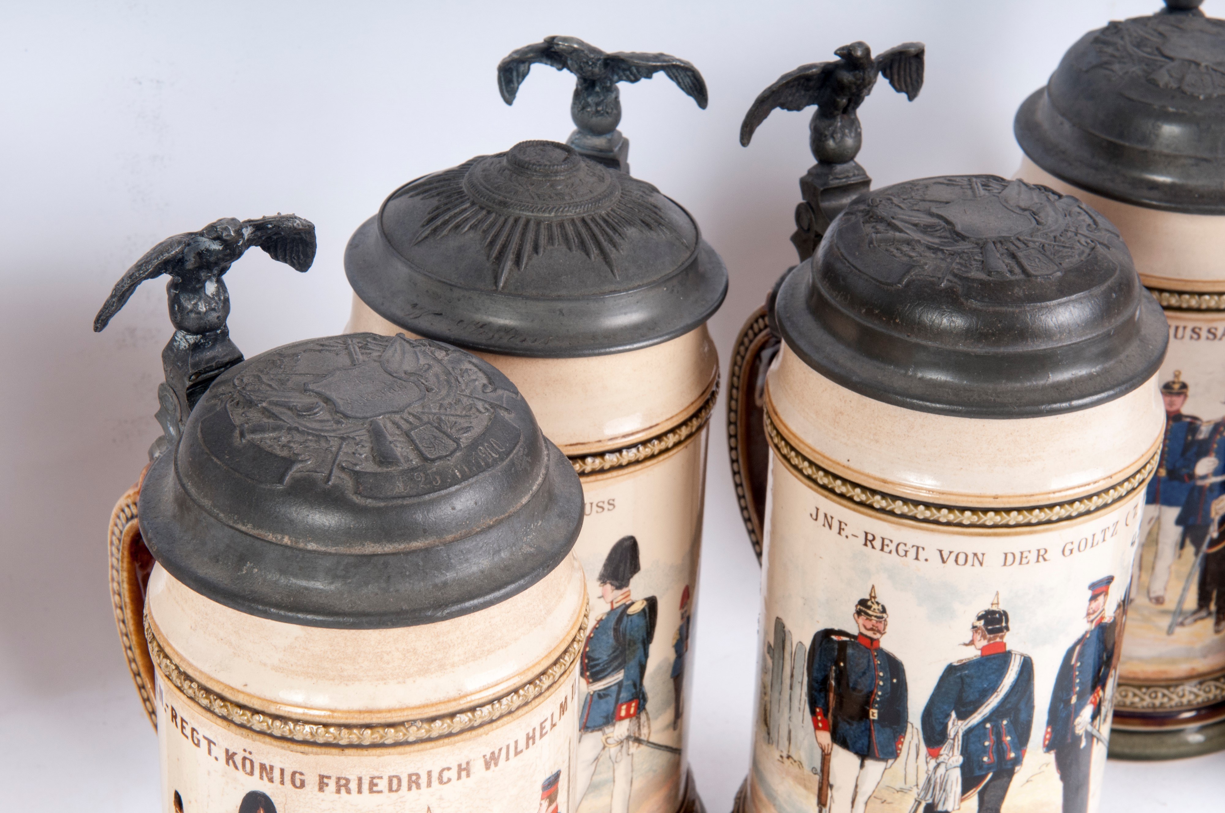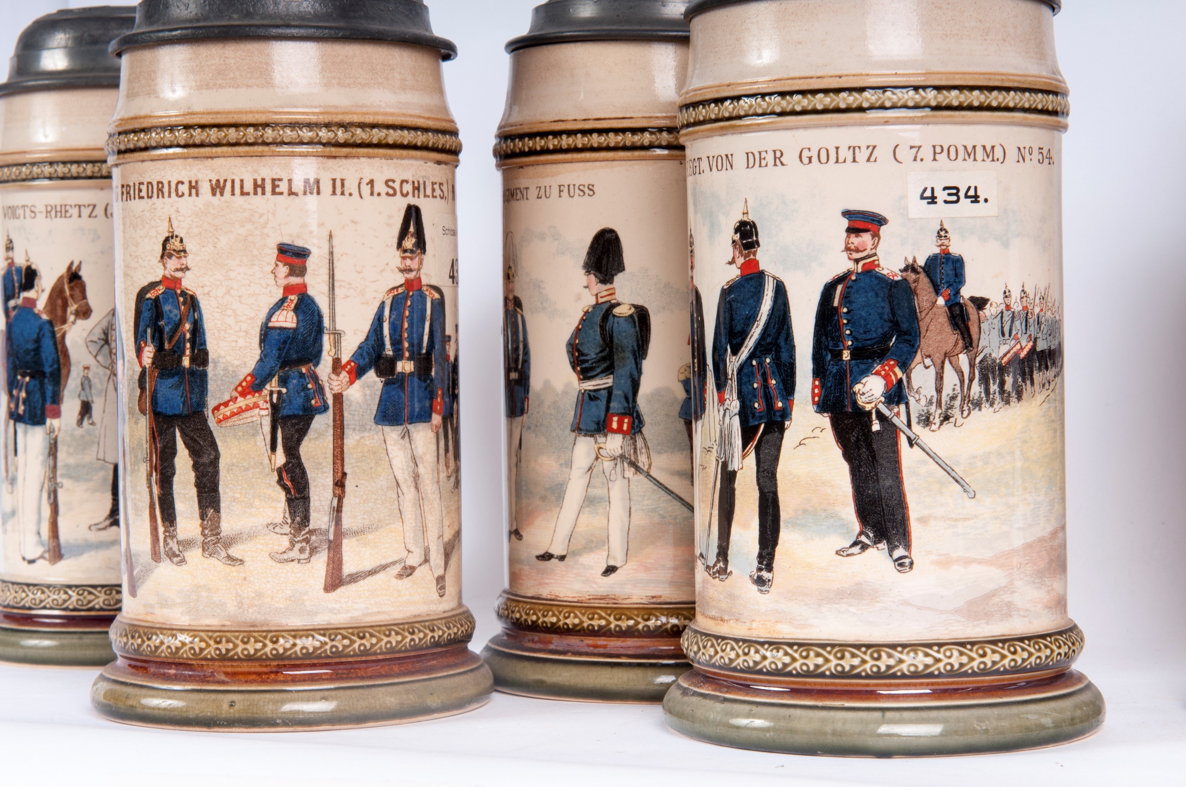 Decorated with the unit's inscription and military scenes. Produced in Mettlach by Vileroy and BOCH.