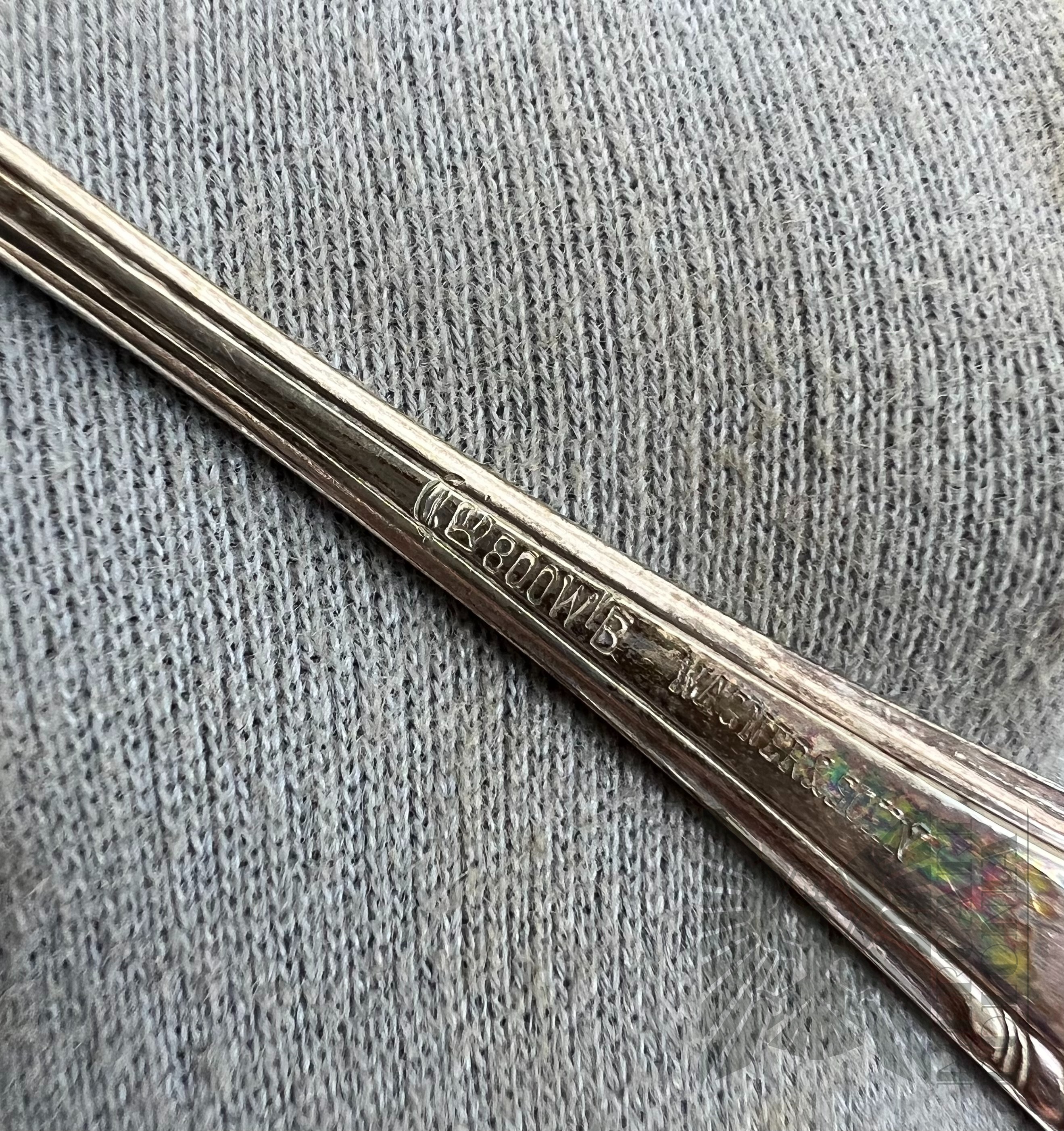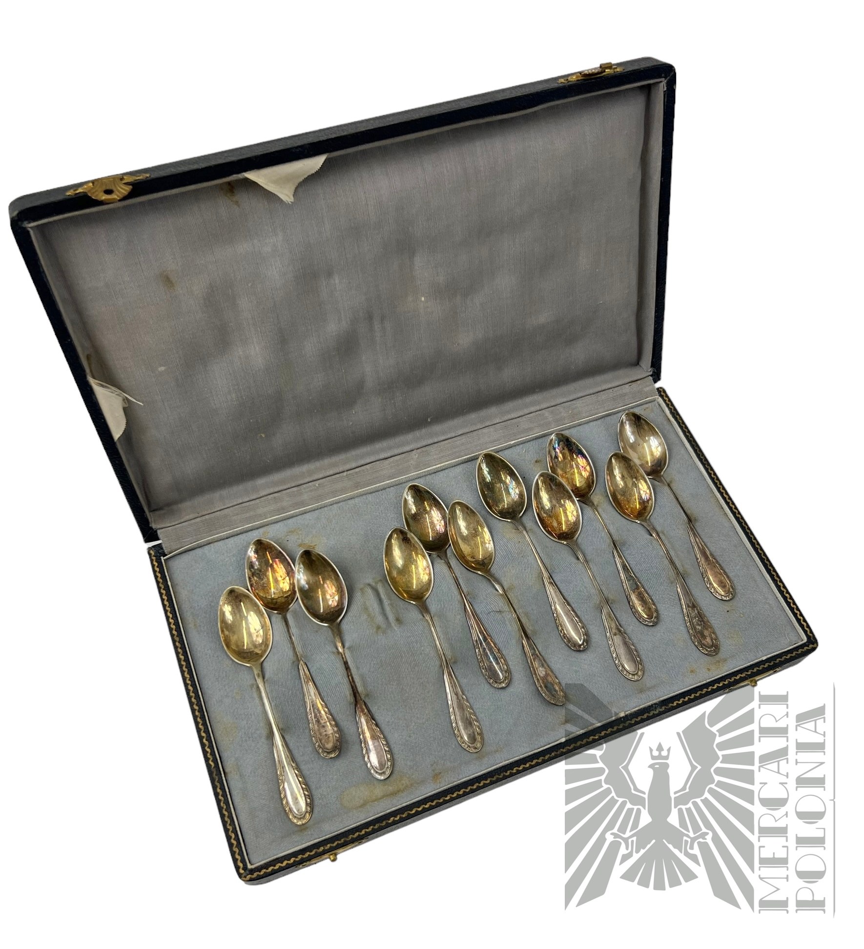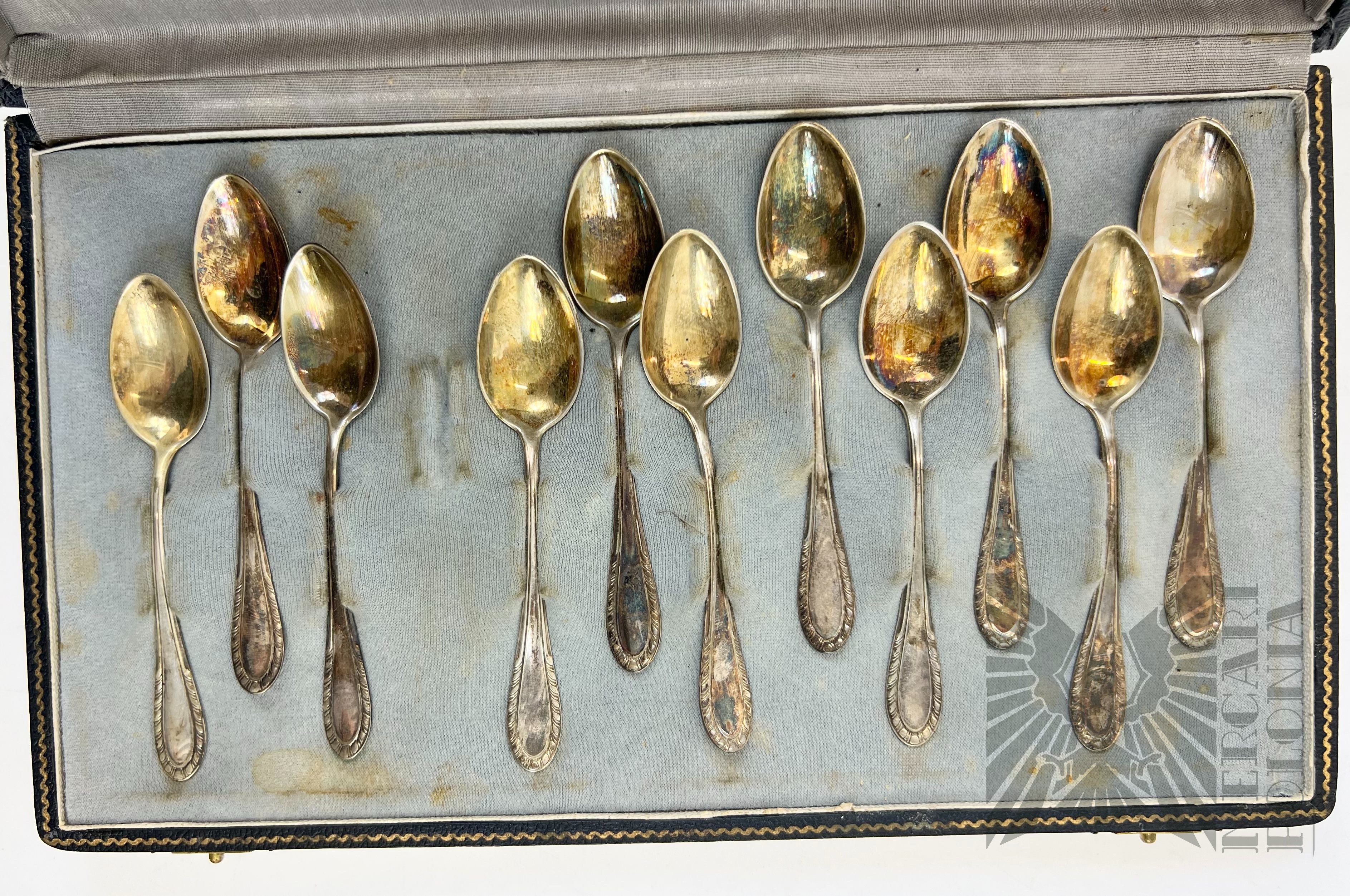 Zestaw srebrnych łyżeczek deserowych, sygnowanych puncą srebra 800, łyżeczki w oryginalnym opakowaniu. Łączna masa wyrobów.