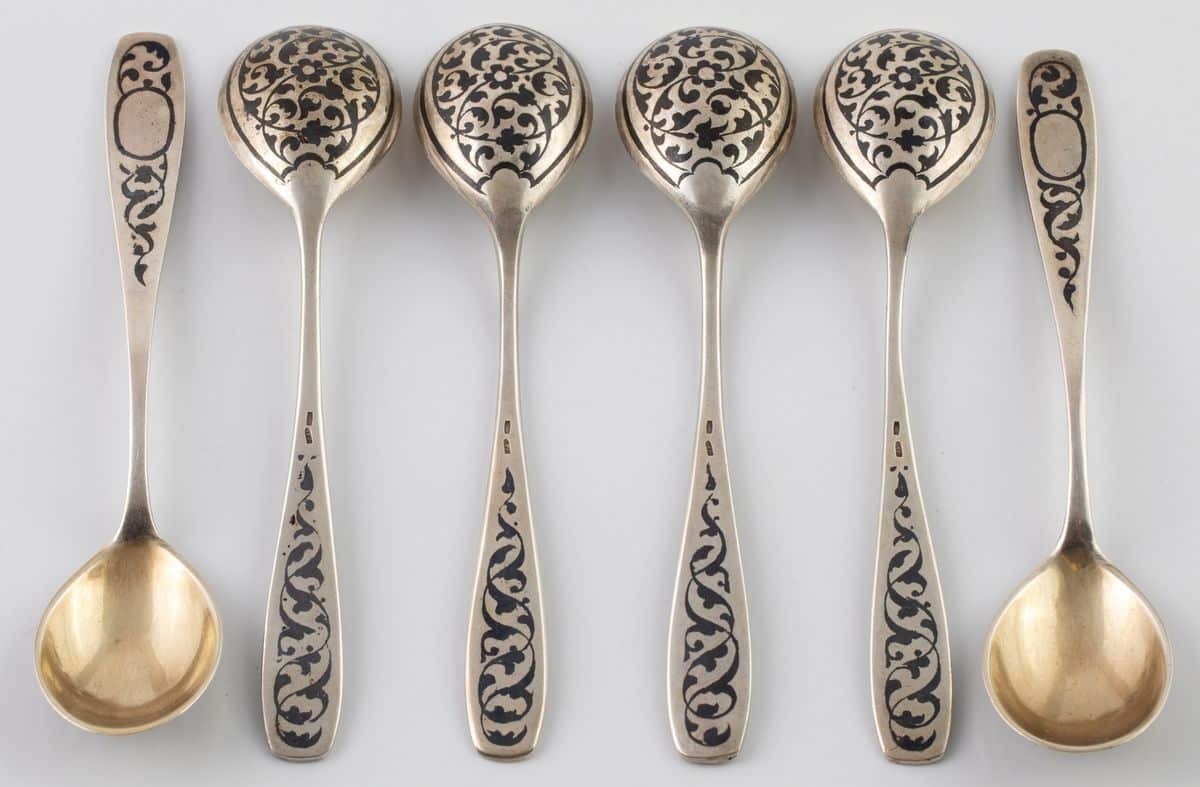 Srebro, próba 875, złocenie, niello, waga 192 g, dł. 14 cm