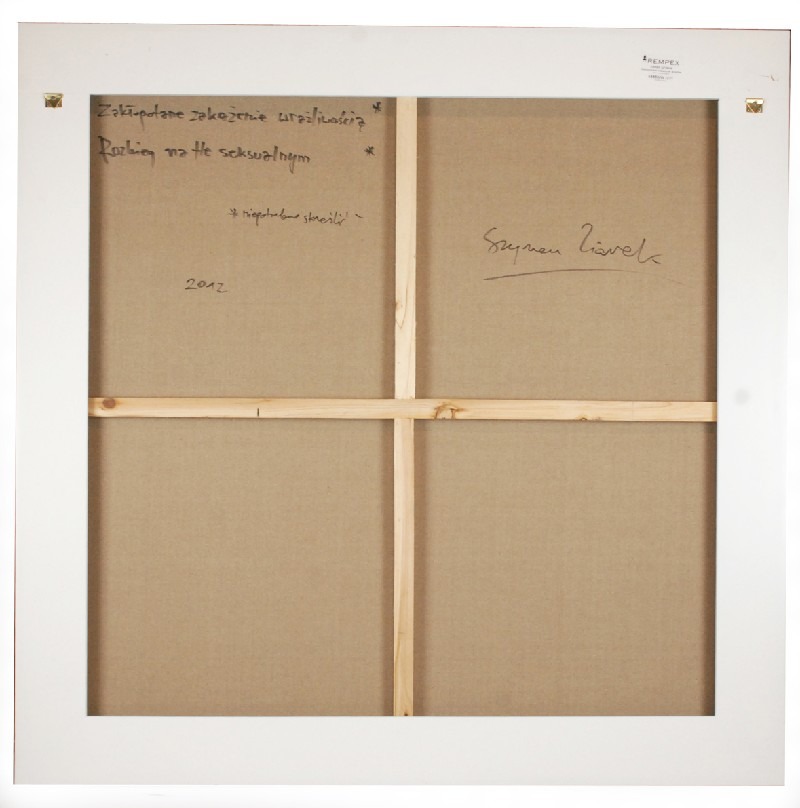 olej, płótno; 100 x 100 cm; sygn., dat. i opis na odwrocie: