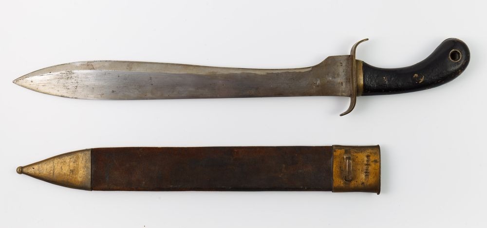 Stal, mosiądz, drewno, skóra, dł. całk. w pochwie 61,5 cm, bez pochwy 58 cm