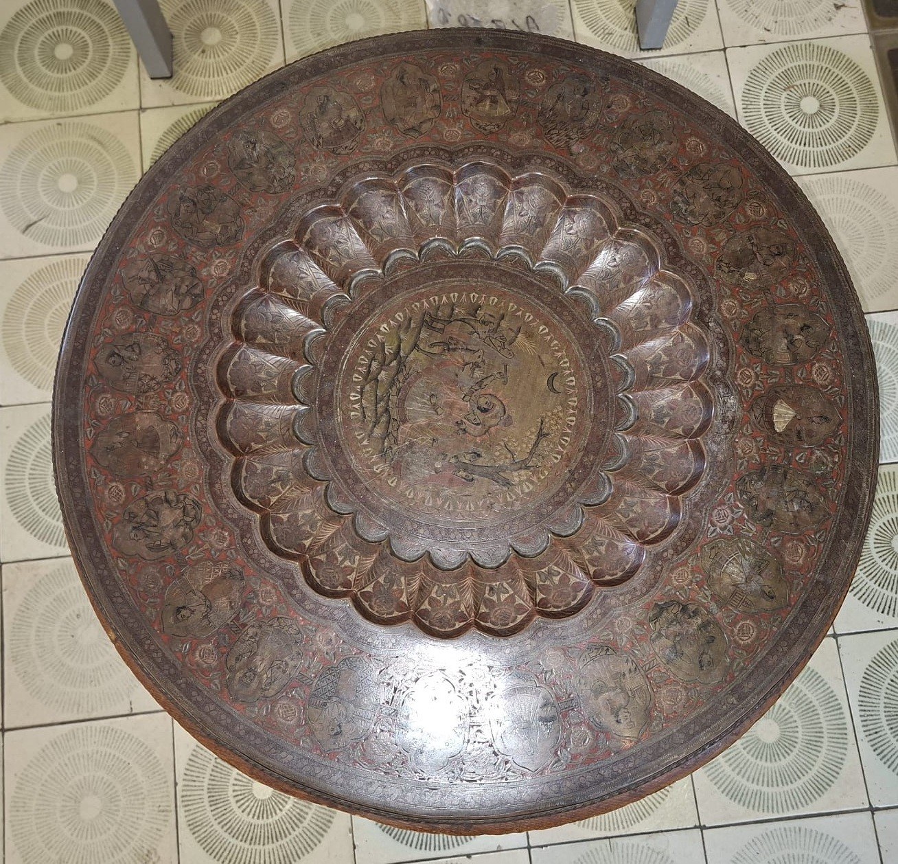 painted and engraved with scenes from Indian tradition.
