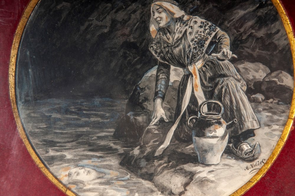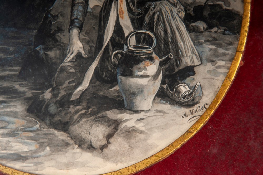 watercolor drawing on round paper