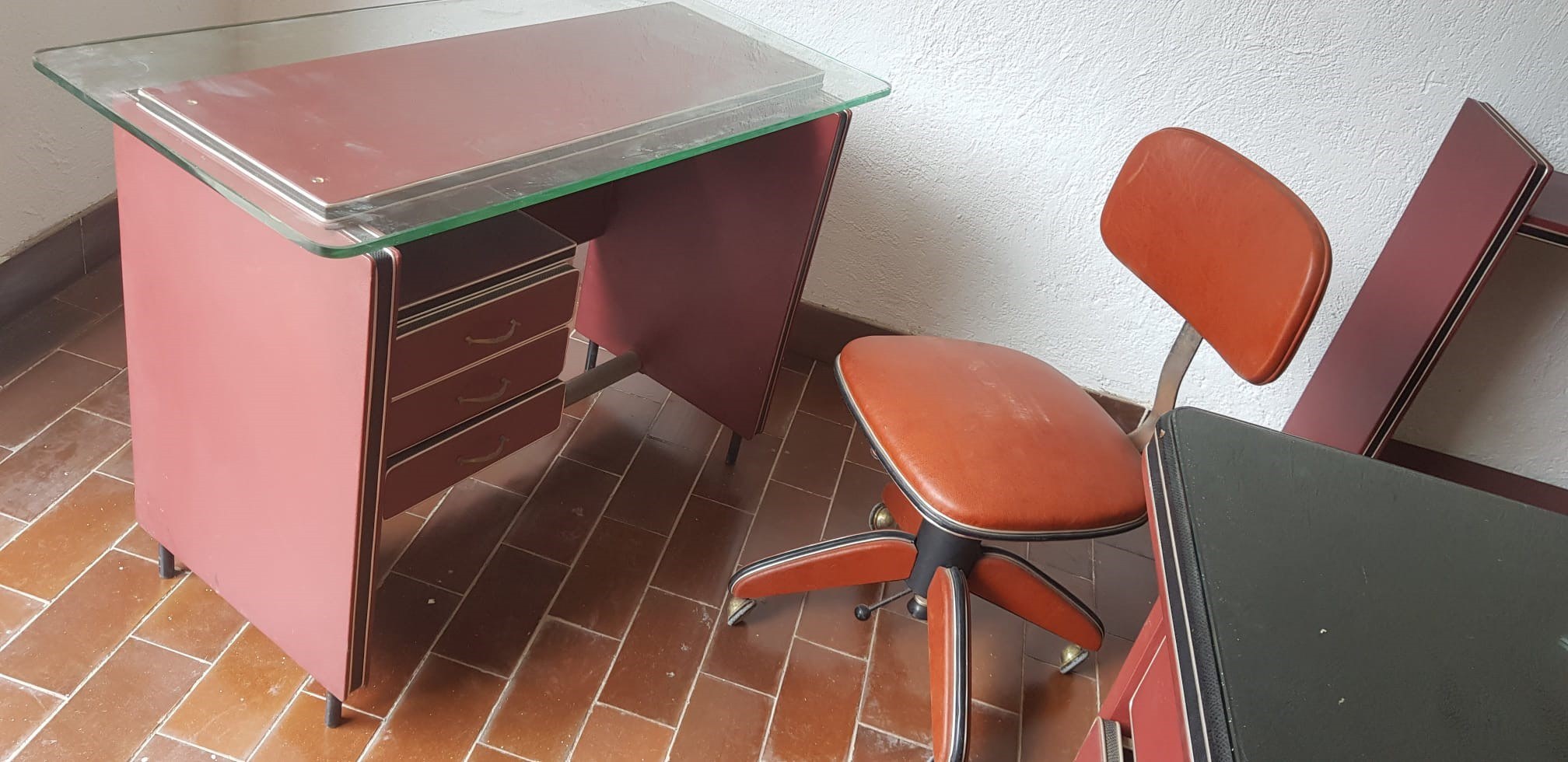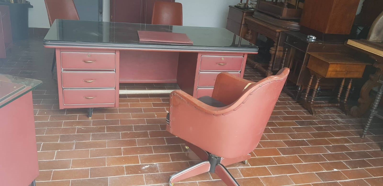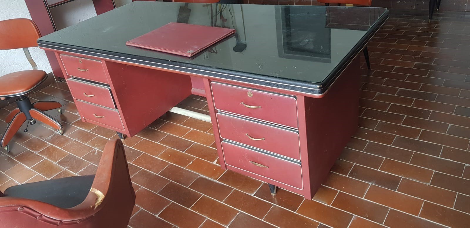 consisting of: executive desk, service desk, wardrobe, two card holders, one armchair, three chairs.