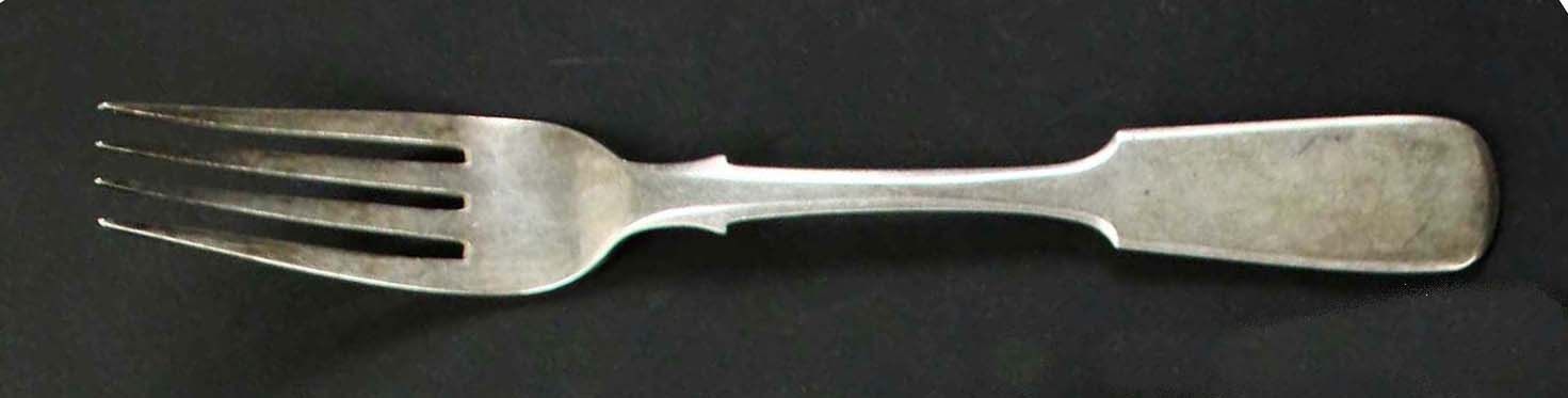 Widelec, Wilno XIX w. Srebro. Wileńska cecha srebra oraz sygnatura wytwórcy. Długość widelca 20,7 cm.