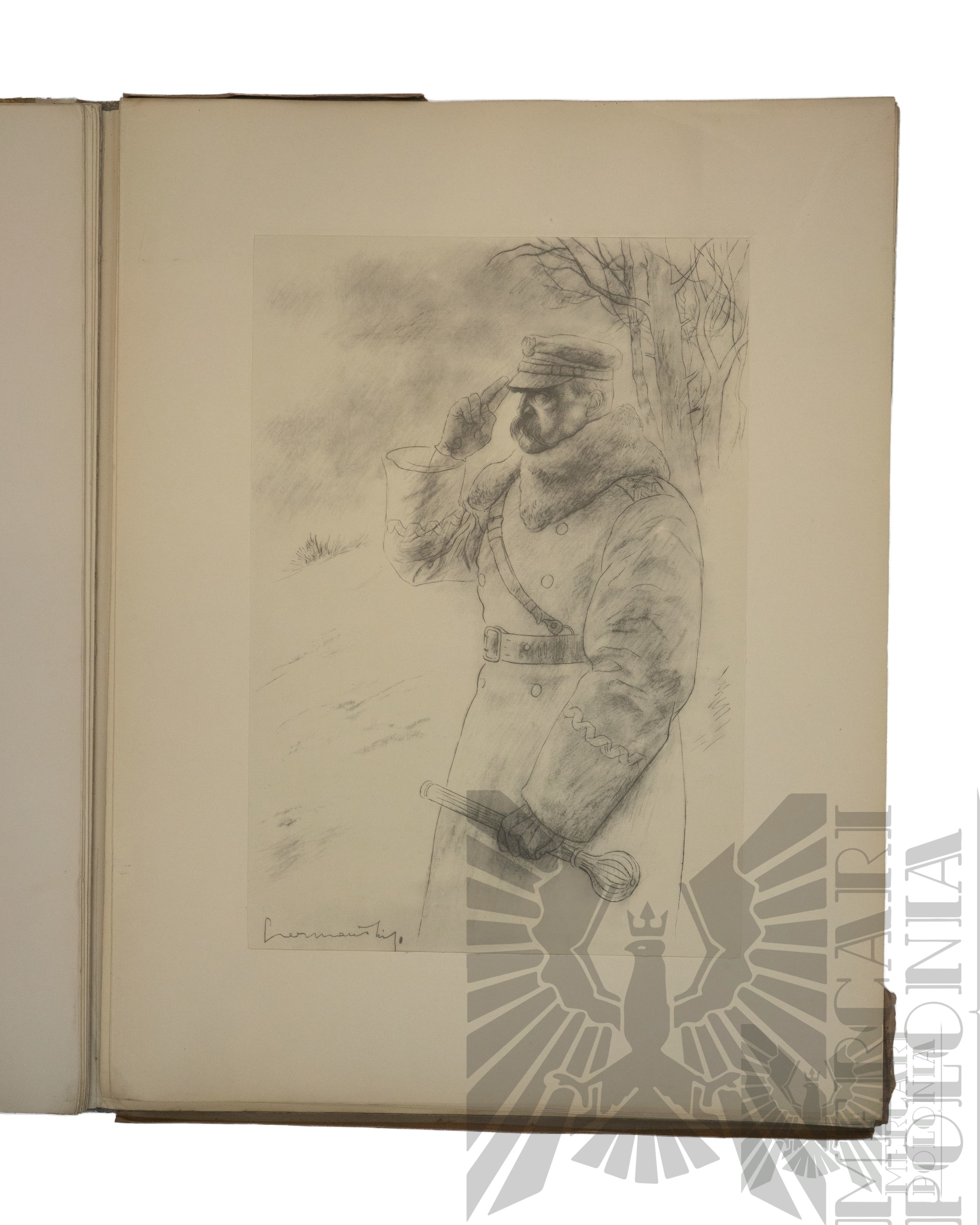 Przedmiotowa litografia pochodzi z teki, którą Piłsudski kazał powiesić sobie w Belwederze.
