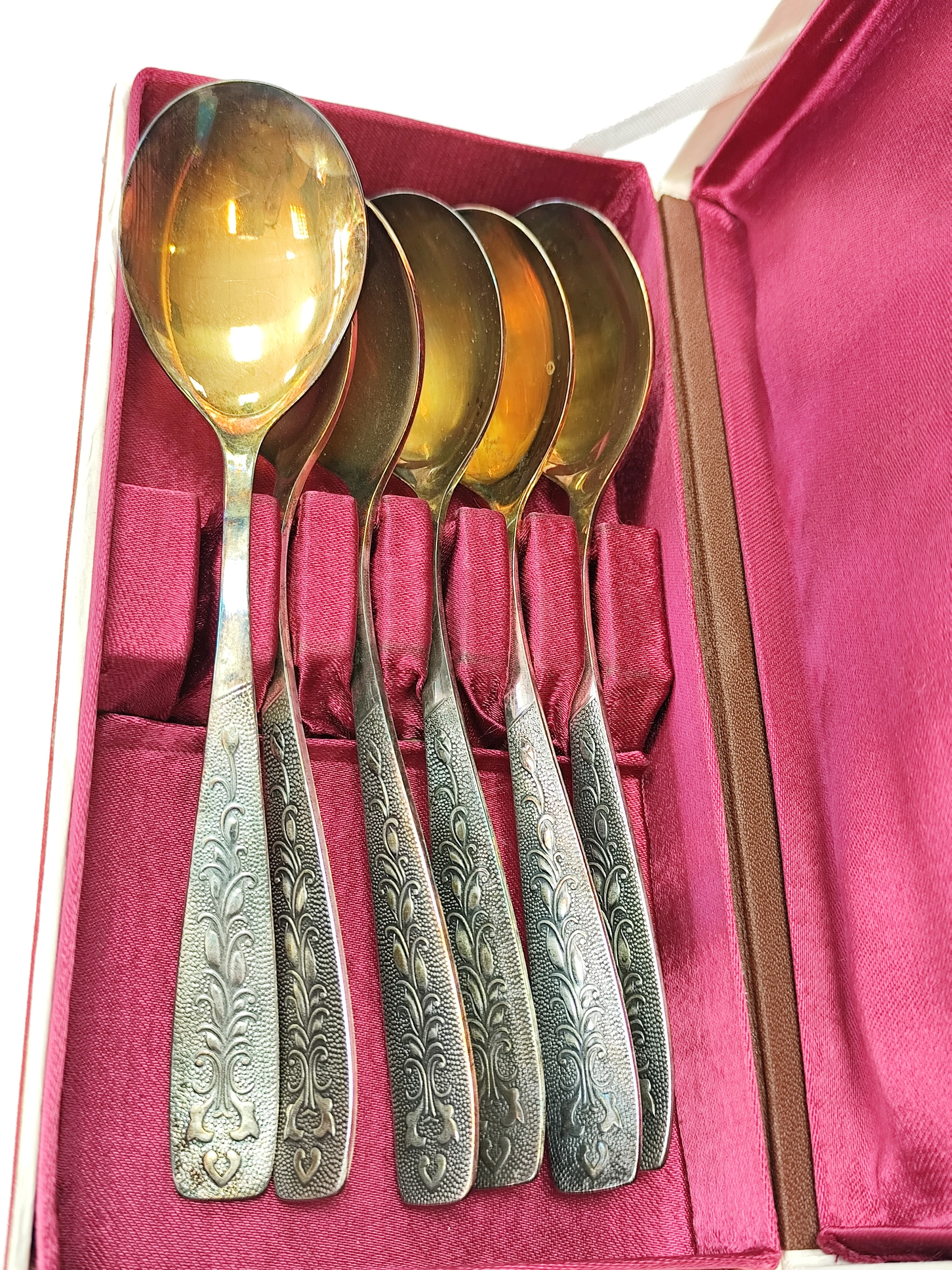 Zestaw 6 posrebrzanych łyżek ZSRR w oryginalnym pudle
