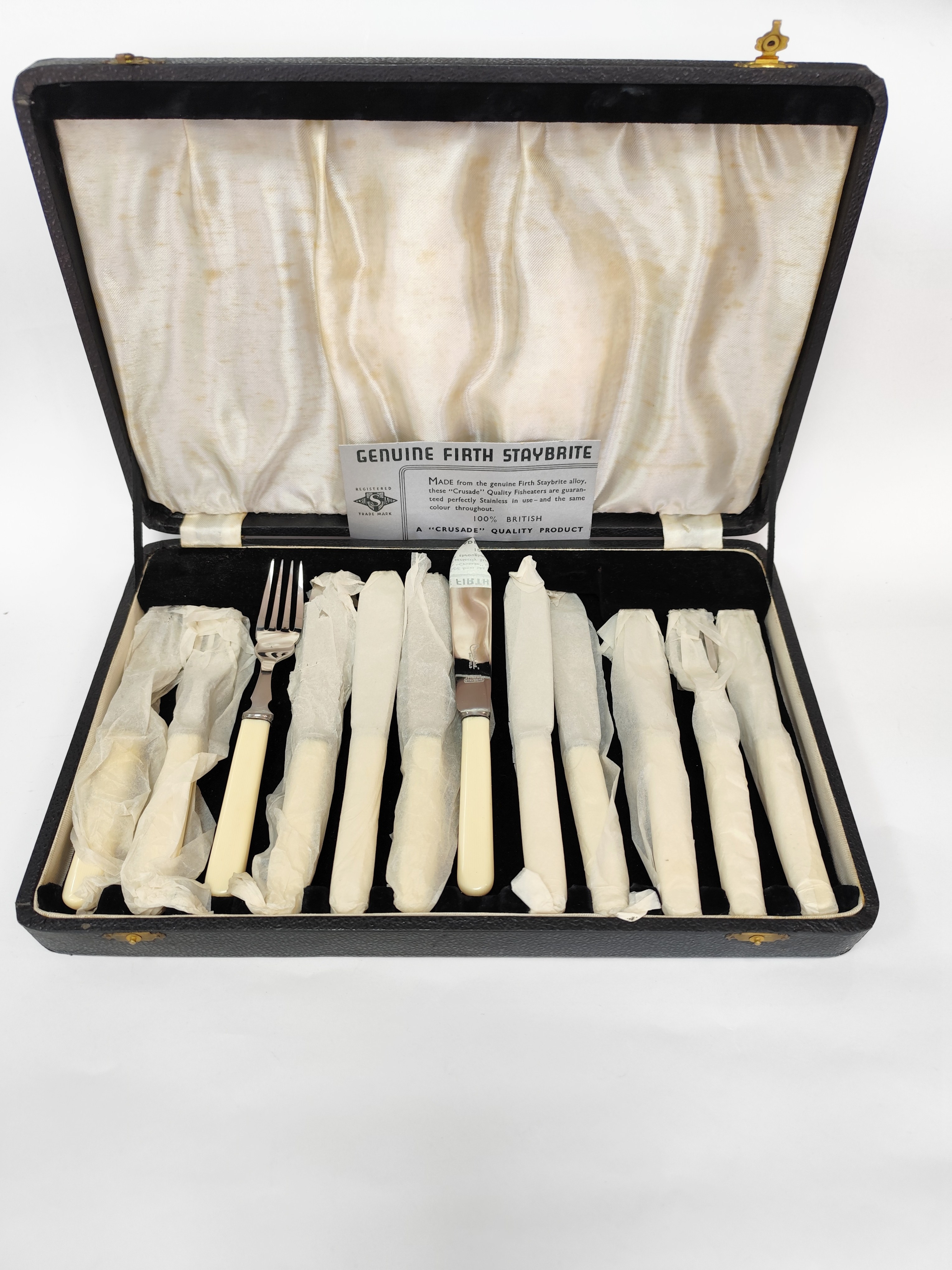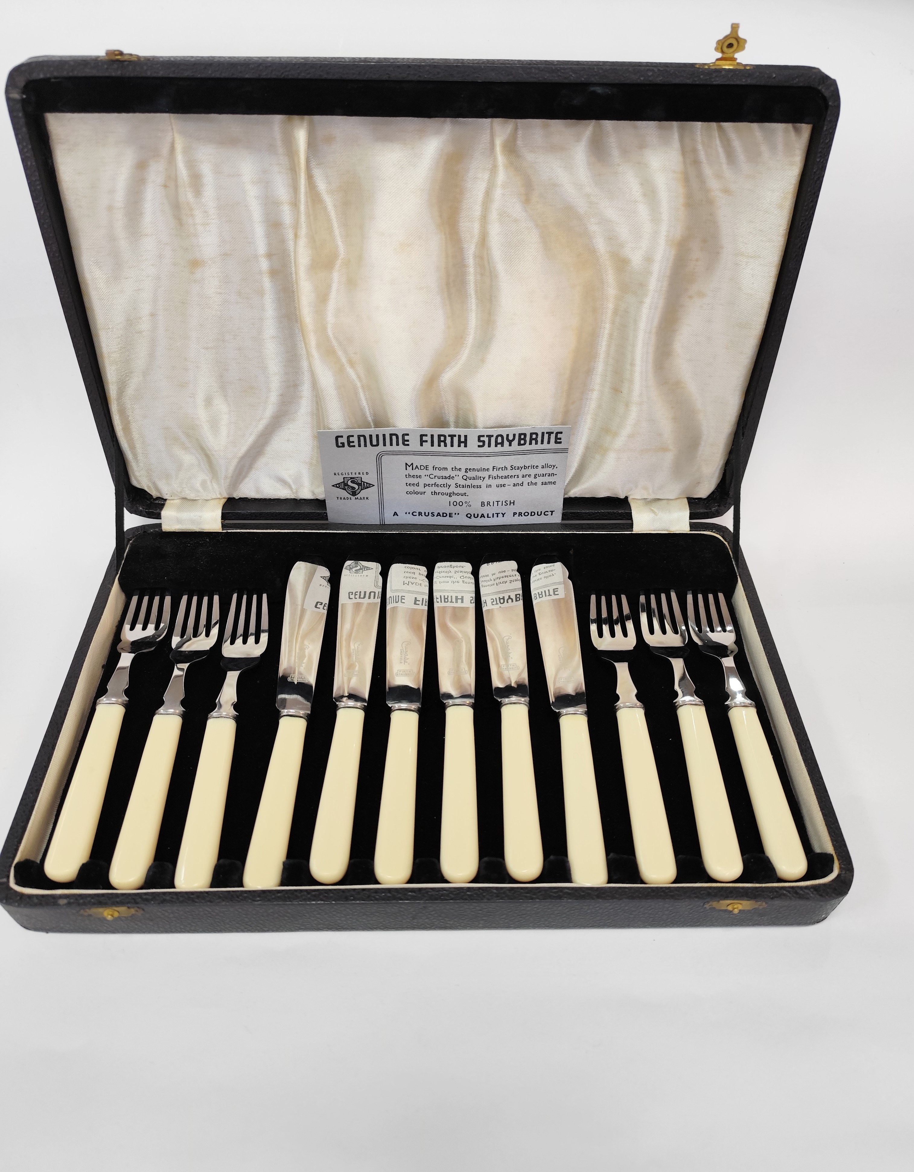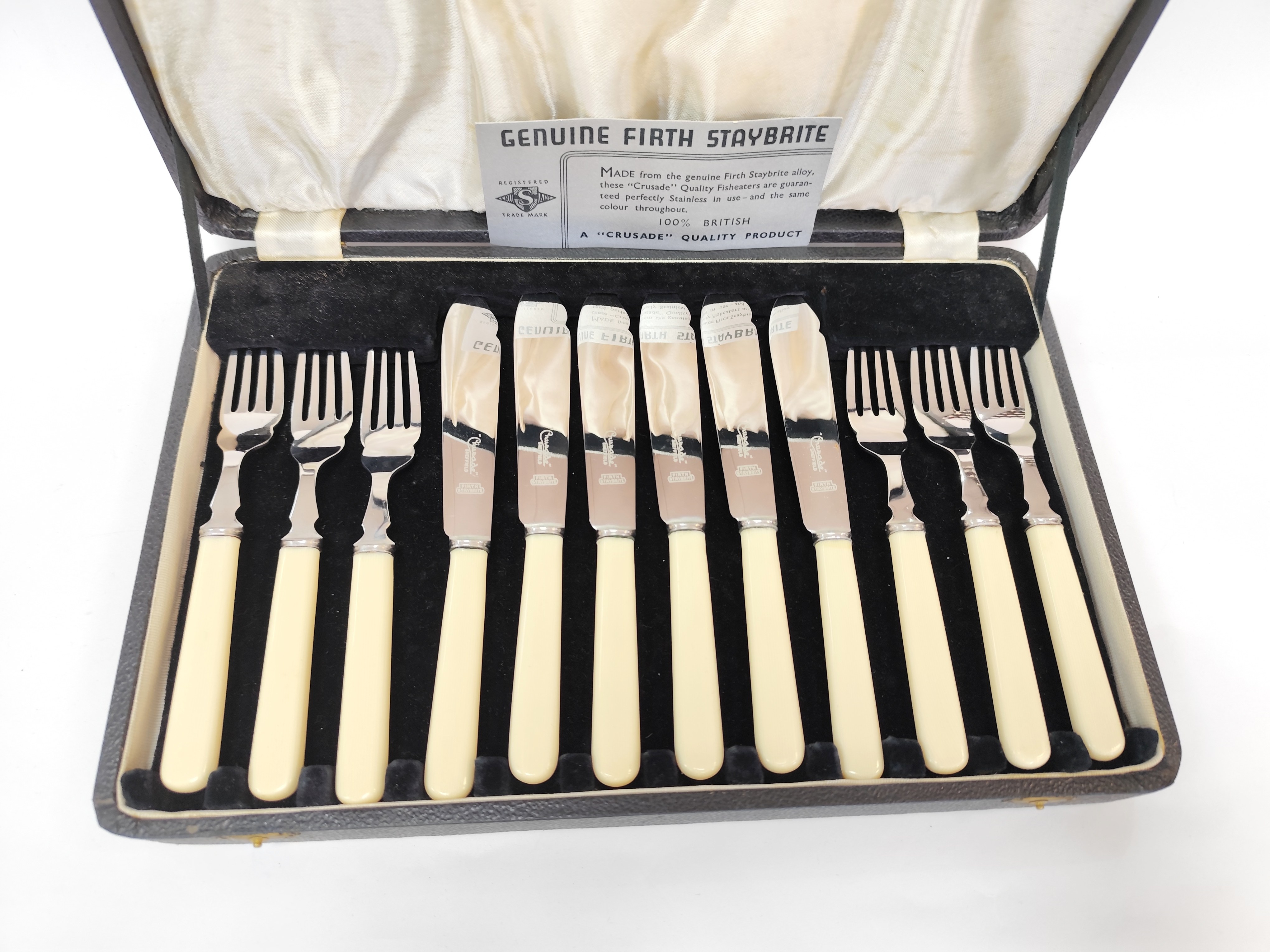 Zestaw posrebrzanych sztućców do ryb 'Firth Straybrite Crusader' w oryginalnym futerale i kartą