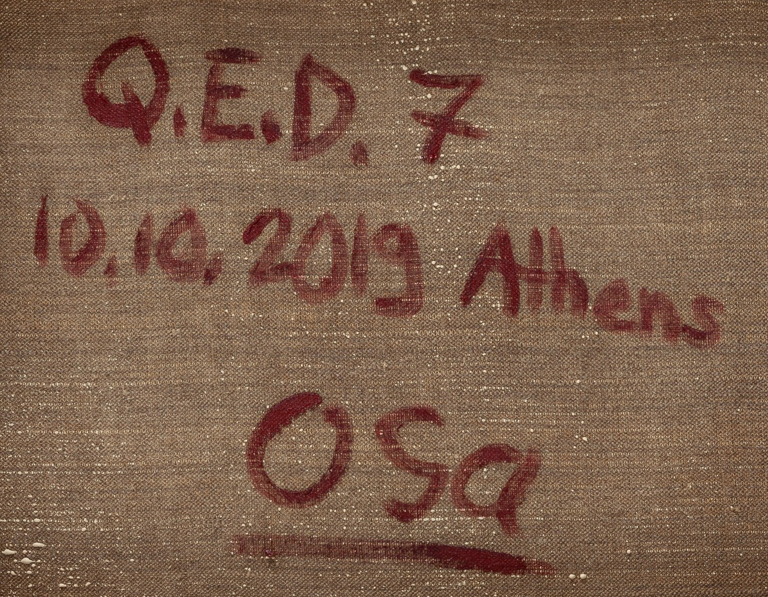 sygnowany, datowany i opisany na odwrociu: 'Q.E.D. 7 | 10.10.2019 Athens | osa'