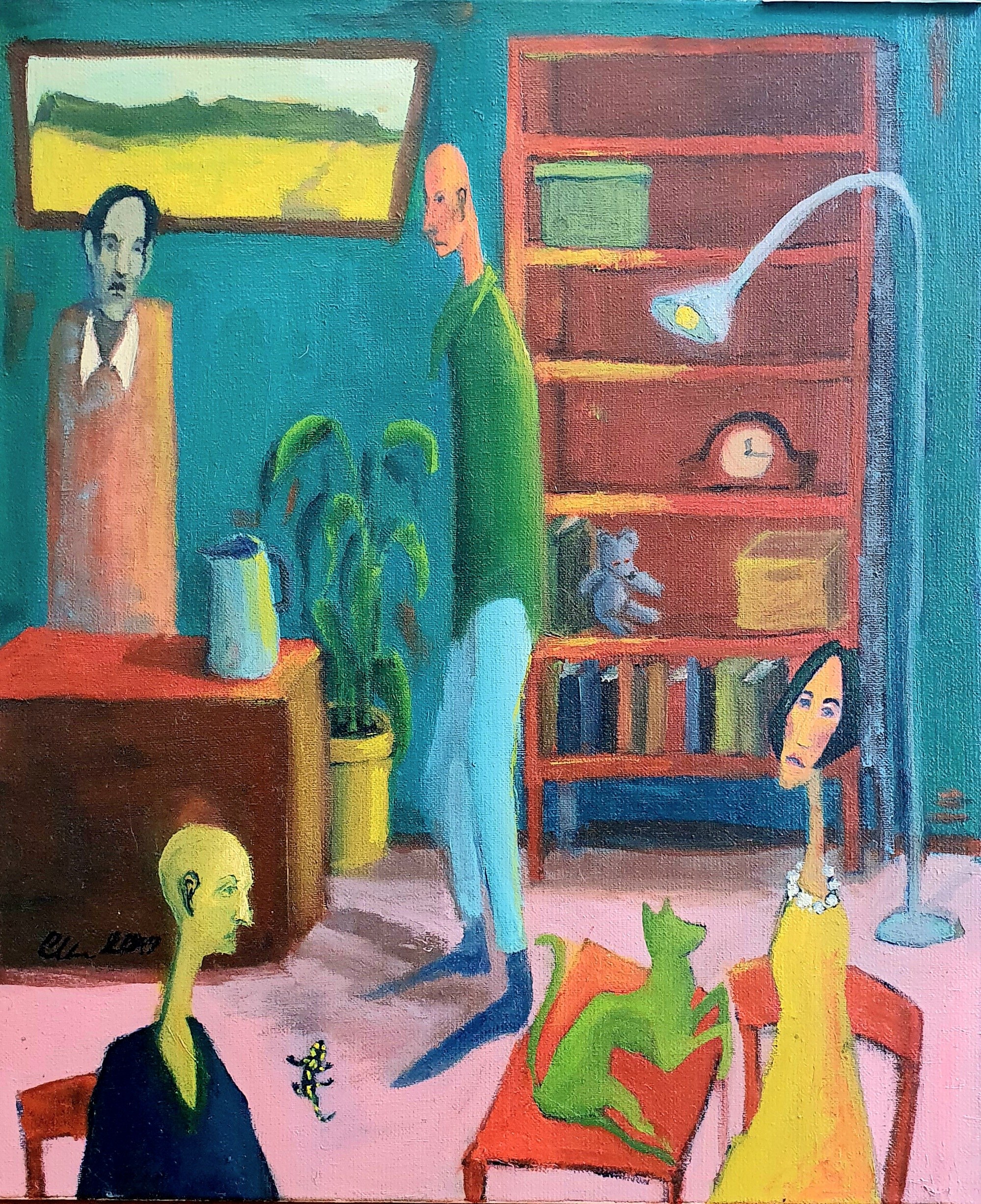 sygn. l.d.; na odwrocie: Aleksandra Woźniak/ „Jaszczurka też jest u siebie”/ olej na płótnie/ Kraków 2019