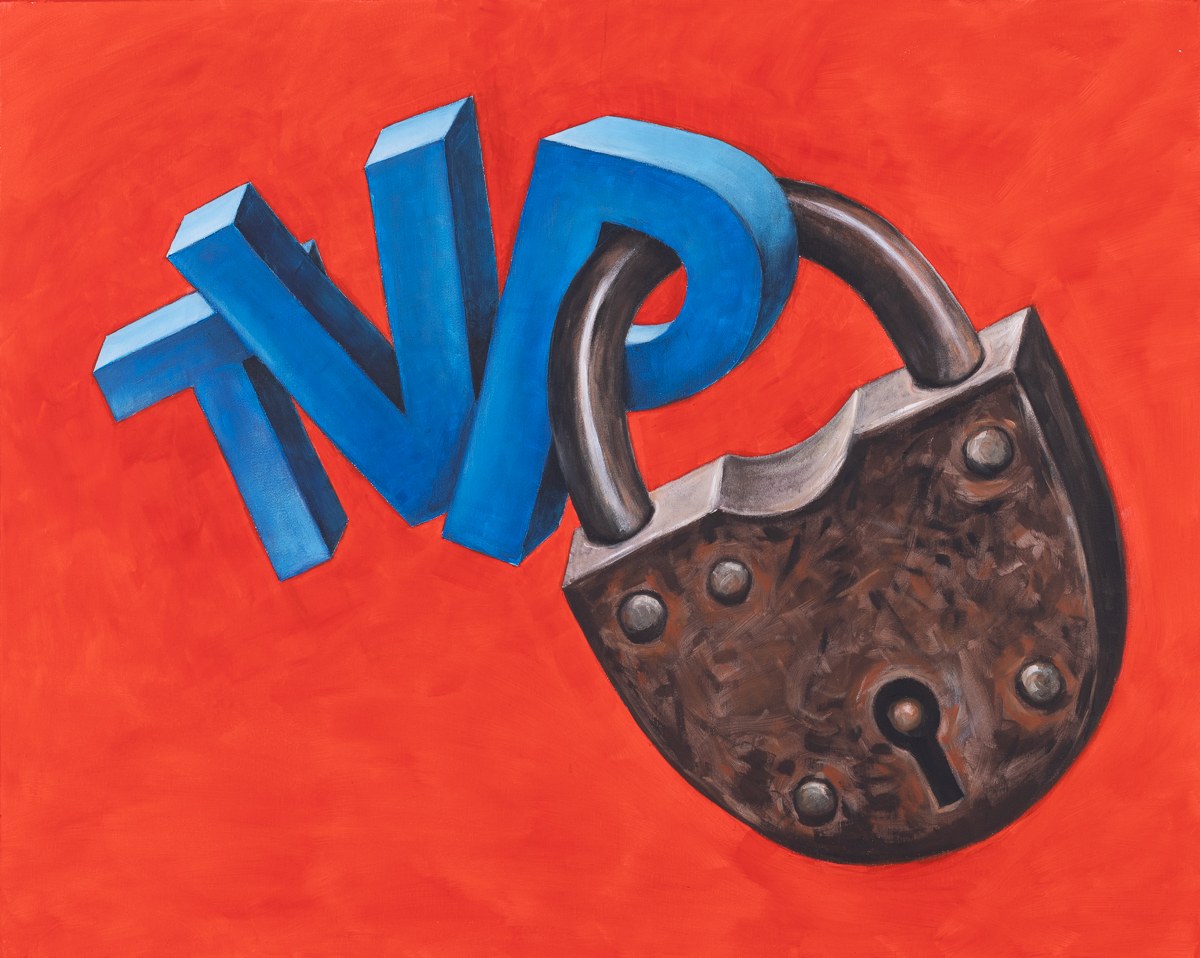 akryl, płótno, 80x100 cm, opisany na odwrocie: ANDRZEJ ZUJEWICZ "TVP" GRUDZIEŃ 2023 akryl