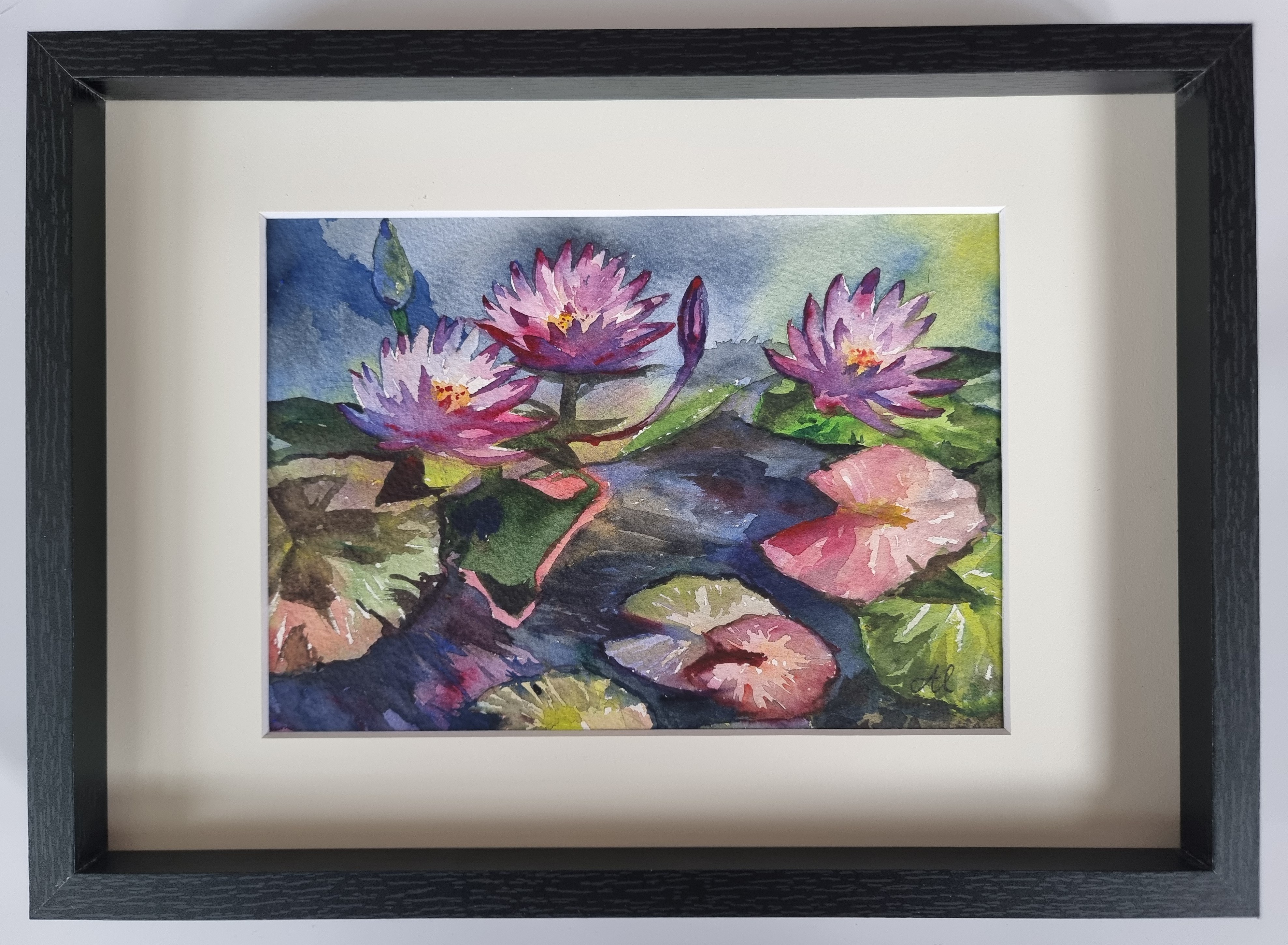 Oprawa: czarna ramka z szybą i kremowym passe partout