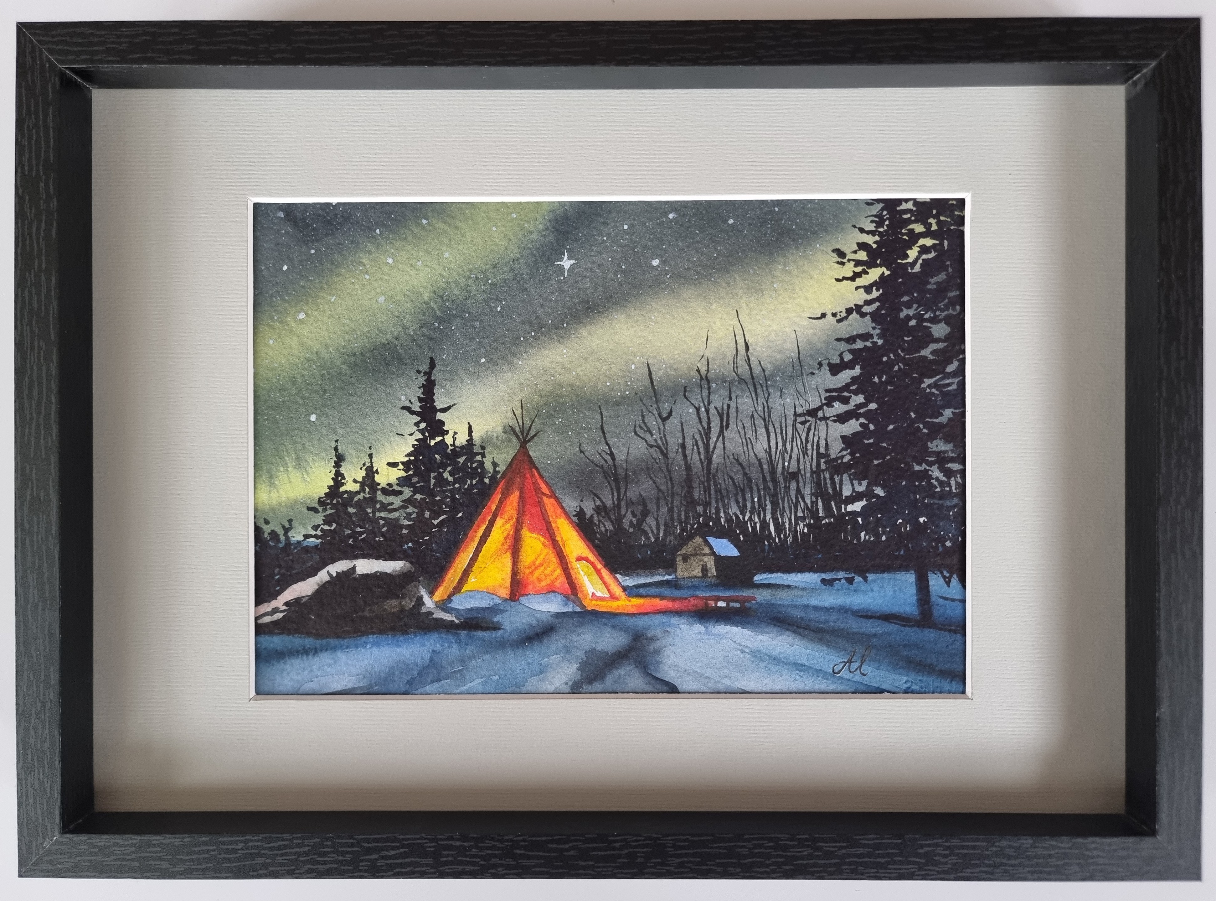 Oprawa: czarna ramka z szybą i szarym passe partout