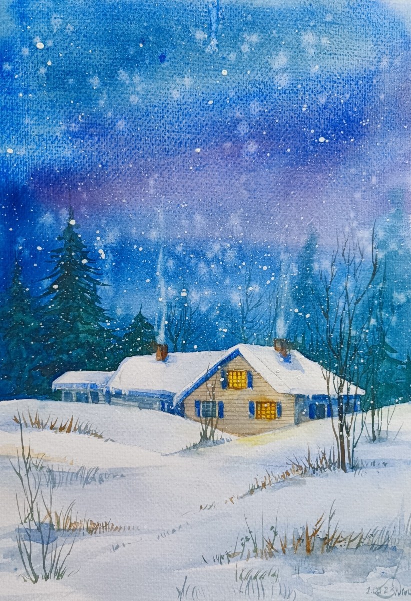 akwarela, papier, 22 x 17 cm, w oprawie: 25 x 20 cm, sygn. p.d.: 1.01.22 Niusza