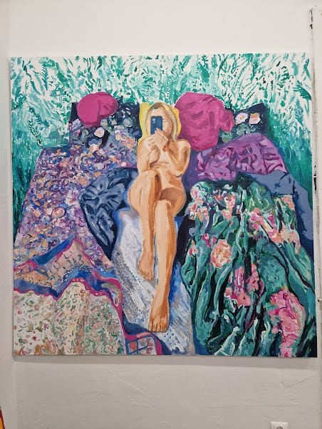 Cykl prac "Łóżko-moja wyspa" ma przedstawiać jak łóżko jako miejsce gdzie dzieje się życie. Często w nim pracujemy, jemy, oglądamy filmy, słuchamy muzyki a także kochamy, przytulamy i śpimy. Łóżko staje się naszą wyspą, miejscem gdzie czujemy się bezpiecznie, tworząc nasz intymny mały świat. W pracy tej duży nacisk został nałożony na fakturę i kolor pościeli i poduszek. Człowiek jest tylko dodatkiem. Duży rozmiar dzieła sprawia, że będzie on dobrze wyglądał jako duży element kolorostyczny na ścianie.