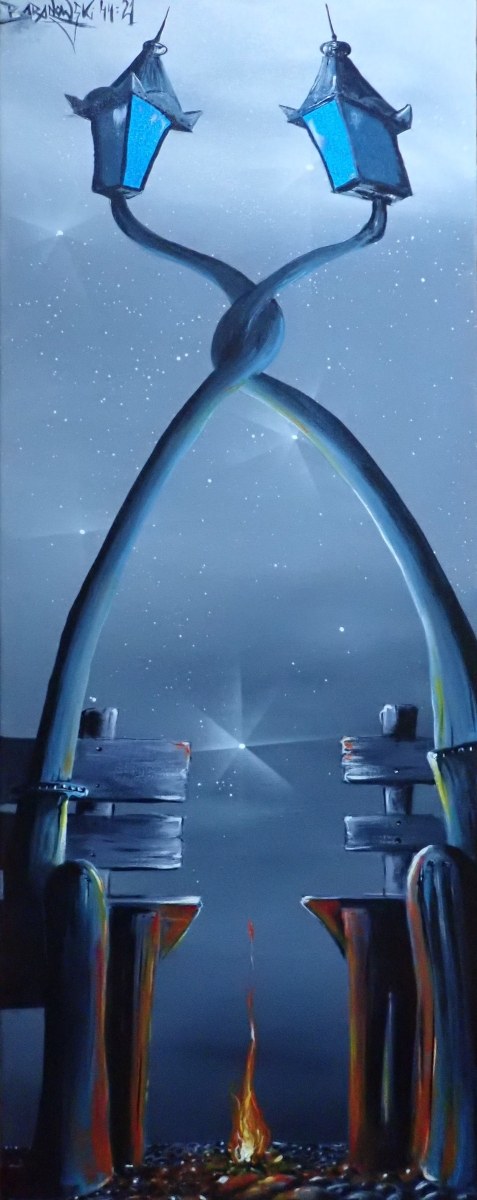akryl, płótno, 100 x 40 cm, sygn. l.g.: Baranowski 44:21