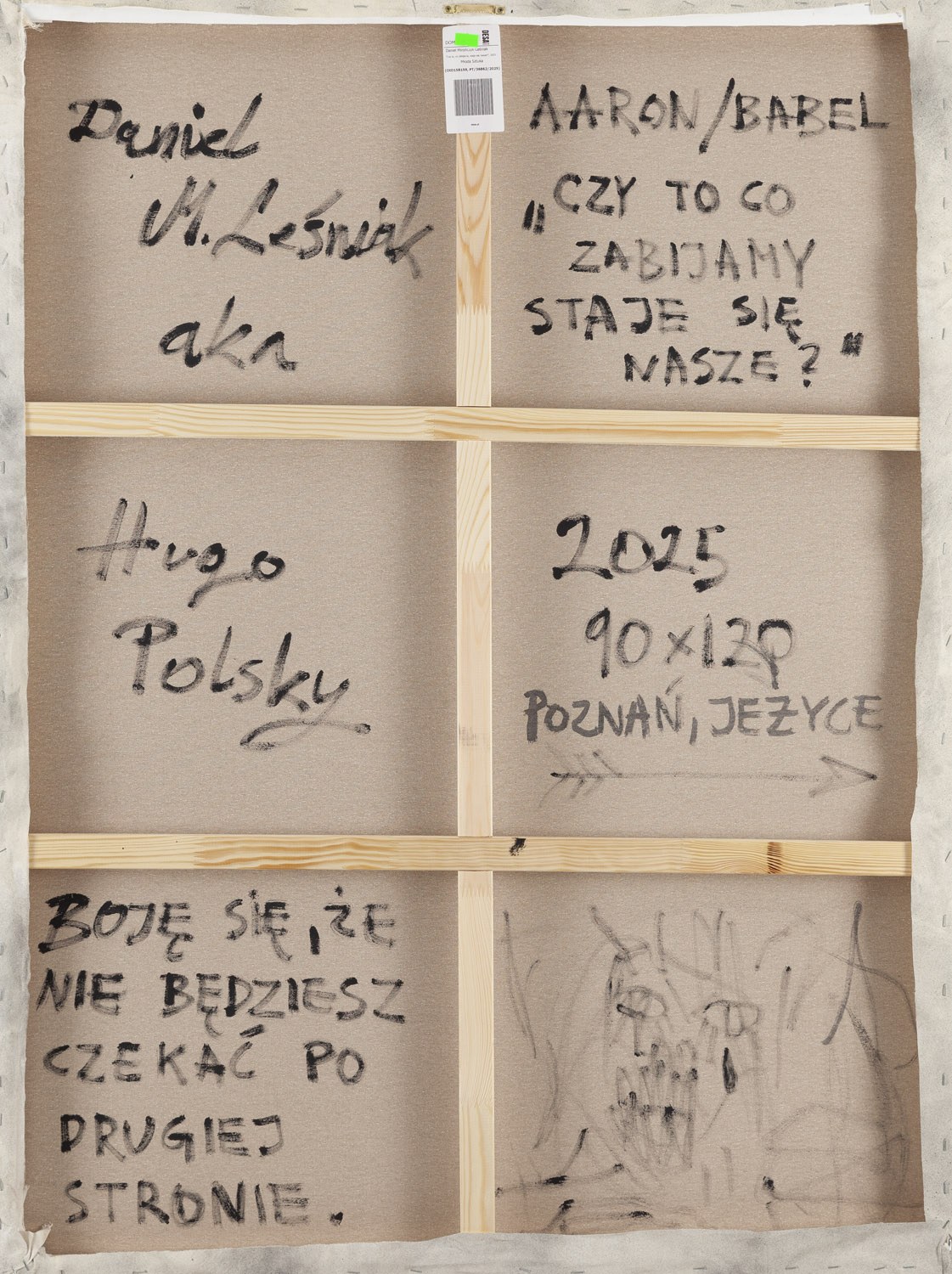 sygnowany, datowany i opisany na odwrociu: 'Daniel | M.Leśniak | aka | Hugo Polsky | 2025 | 90 x 120 | POZNAŃ, JEŻYCE | [notatki autorskie]'
