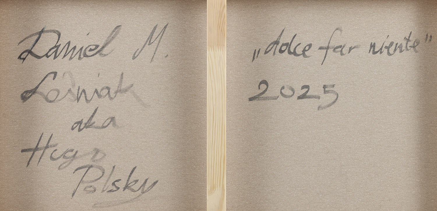 sygnowany, datowany i opisany na odwrociu: 'Daniel M. | Leśniak | Hugo | Polsky | "dolce far niente" | 2025'