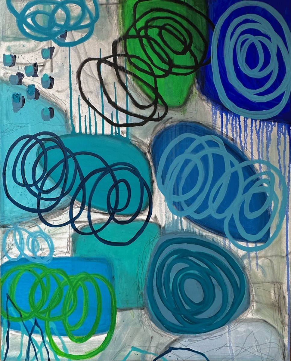 technika mieszana (akryl, ołówek, pastele olejne), płótno, 100 x 80 cm, sygn. na odwrocie