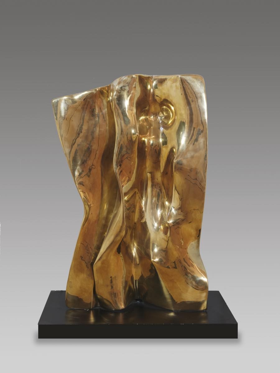 Giò Pomodoro Tensione (monofaccia) bronzo 117 x 75 x 15 cm; 124 x 91 x 45 cm (con la base) Eseguito nel 1959 Opera registrata presso l'Archivio Giò Pomodoro, Milano, con il n. 00895 M, come da autentica su fotografia Provenienza: Sotheby's, Asta Modern and Contemporary Art, Milano, 21 novembre 2006, lotto 269. Studio Progettoarte Elm, Milano Collezione Sasso, Milano Bibliografia: C. L. Ragghianti, G. Ballo, in IV Biennale internazionale di scultura - Città di Carrara, Carrara 1965 M. Meneguzzo, Giò Pomodoro Catalogo Generale, Milano 2023, Vol. II, p. 76, n. 39 Esposizioni: Urbino, Galleria Nazionale delle Marche, Palazzo Ducale, Giò Pomodoro, Panta Rei, 2018, pg 42-43 Milano, Studio Progettoarte Elm, Giò Pomodoro, 2014 Giò Pomodoro (Orciano di Pesaro, 17 novembre 1930 - Milano, 21 dicembre 2002) Considerato tra i massimi scultori a livello internazionale, dal 1955 collabora attivamente alla rivista “Il Gesto”. Sarà con Dorazio, Novelli, Turcato, Tancredi, Perilli, Fontana e il fratello Arnaldo Pomodoro che parteciperà alle mostre del gruppo “Continuità”, presentate da Argan, Ballo e Russoli. Successivamente si staccherà dal gruppo e inizierà la sua ricerca verso la “rappresentazione razionale dei segni”. Collaborerà poi con il fratello Arnaldo Pomodoro alla creazione di gioielli all’interno del “Gruppo 3P”. In seguito sperimenterà i primi grandi rilievi in bronzo caratterizzati da vaste superfici fluttuanti per arrivare poi a costruire monumentali blocchi di marmo che, nel loro sovrapporsi e affiancarsi, aprono liberi varchi nello spazio a ricordo di portali o finestre, spazi in cui la luce solare irrompe. Dagli anni '70 inizia a lavorare alle monumentali “Superfici in tensione”, sculture dalle superfici potentemente e morbidamente mosse come ondate, realizzate in vari materiali che vanno dal marmo al bronzo fino alla fibra di vetro di diversi colori, con andamenti estesi orizzontalmente o sistemati a parete verticale, frontali o bifronti. Stima € 60.000 - 80.000