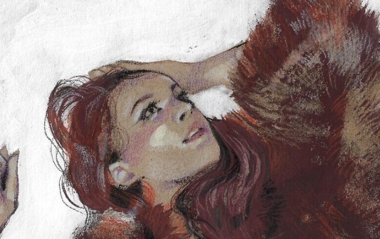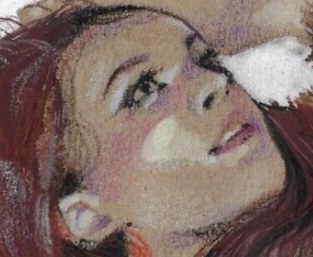 Impresjonistyczny portret kobiety , praca wykonana ręcznie przez autorkę w jednym egzemplarzu. Sygnowana w dolnym rogu , oprawiona .