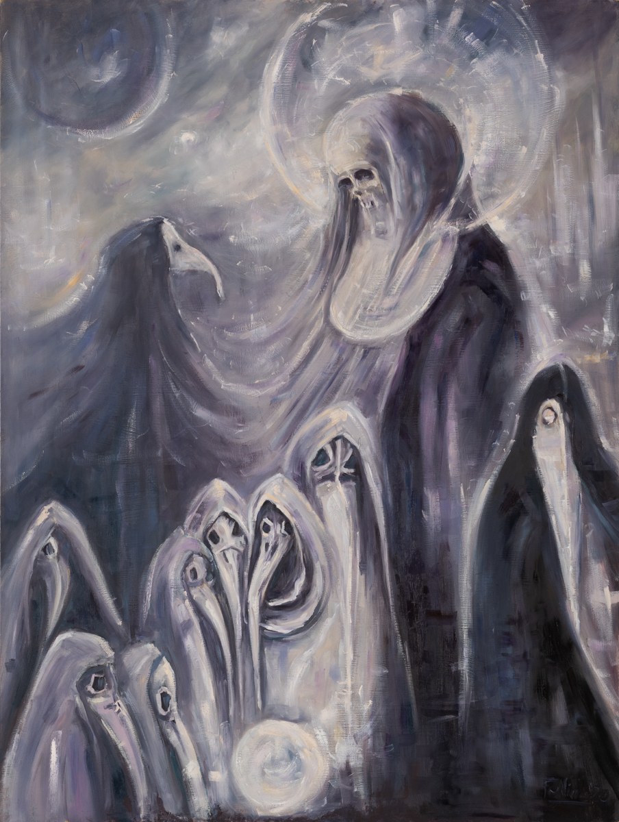 olej, płyta, 120x90 cm, praca wymaga oprawy, sygn. p.d.: Fellino '20, opisany na odwrocie: Izabela Szarek Fellino 2020