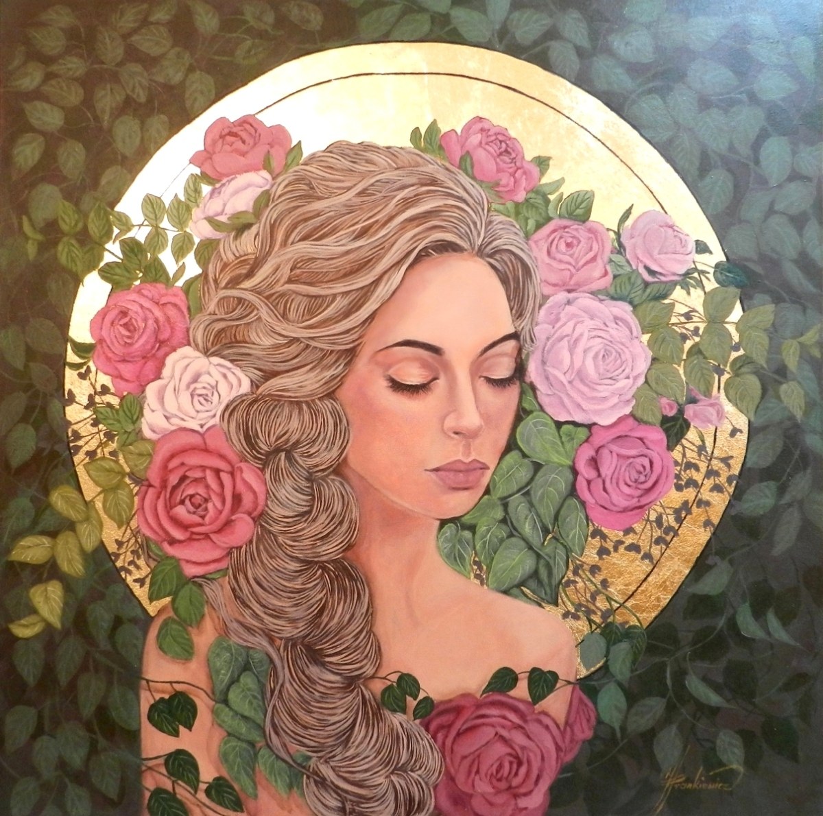 technika mieszana (akryl, szlagmetal), płótno, 80 x 80 cm, sygn. p.d.: JFrankiewicz